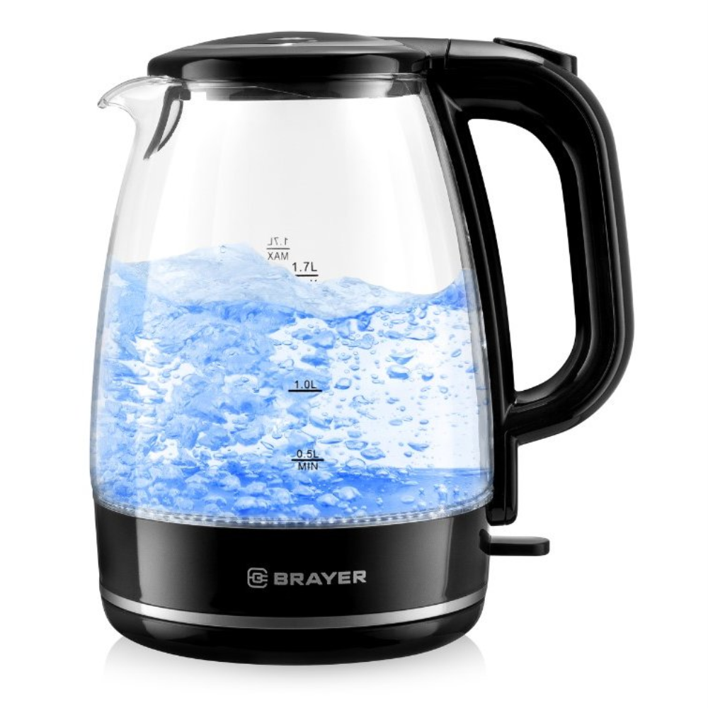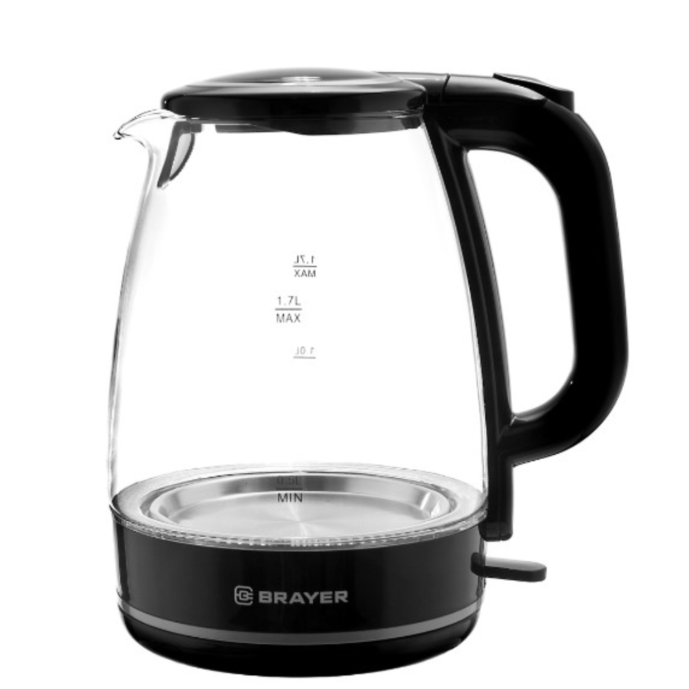 Чайник BRAYER BR1030, 1,7 л, 2200 Вт, закрытый нагревательный элемент, стекло, черный