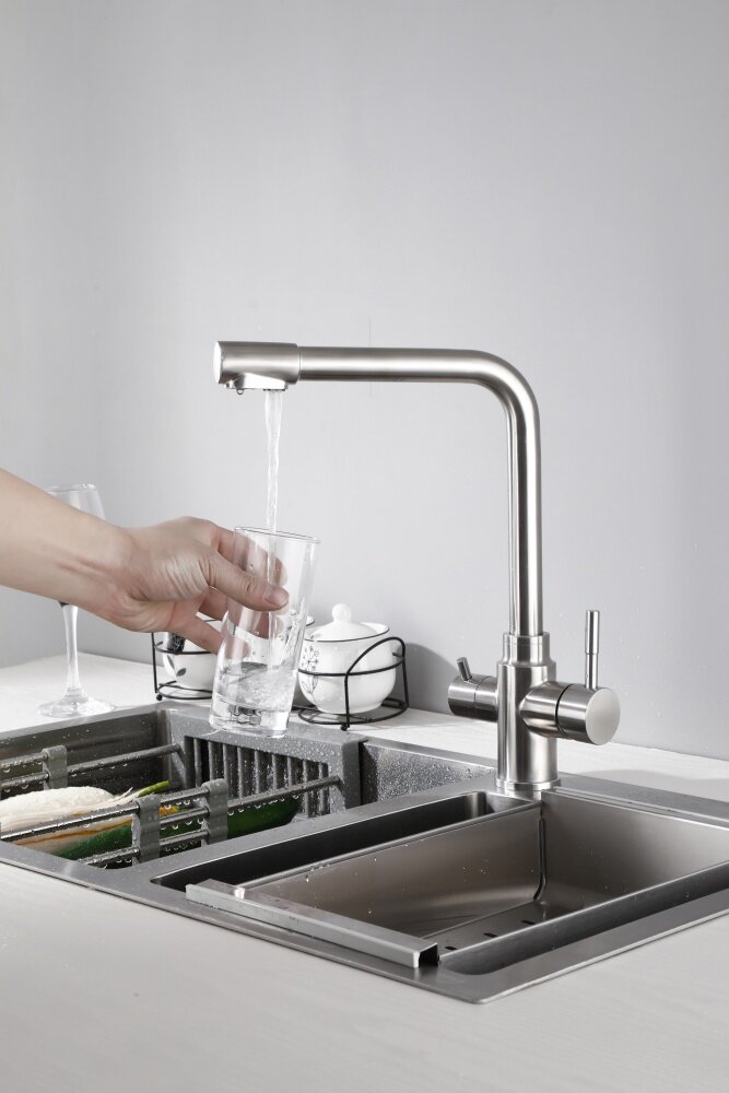 Смеситель кухонный Hansen HL15084-G, со встроенным краном для питьевой воды цвет Сатин