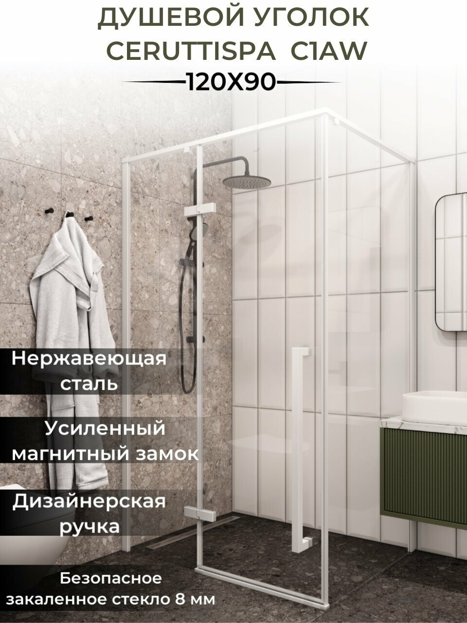 СохранитьДушевой уголок Ceruttispa C1AW (90x120x195), без поддона, профиль белый, стекло прозрачное интересное: