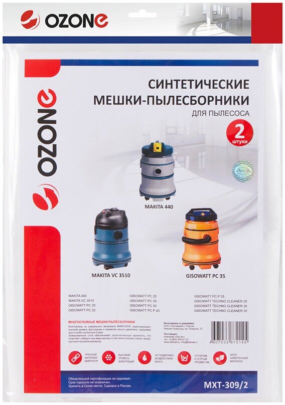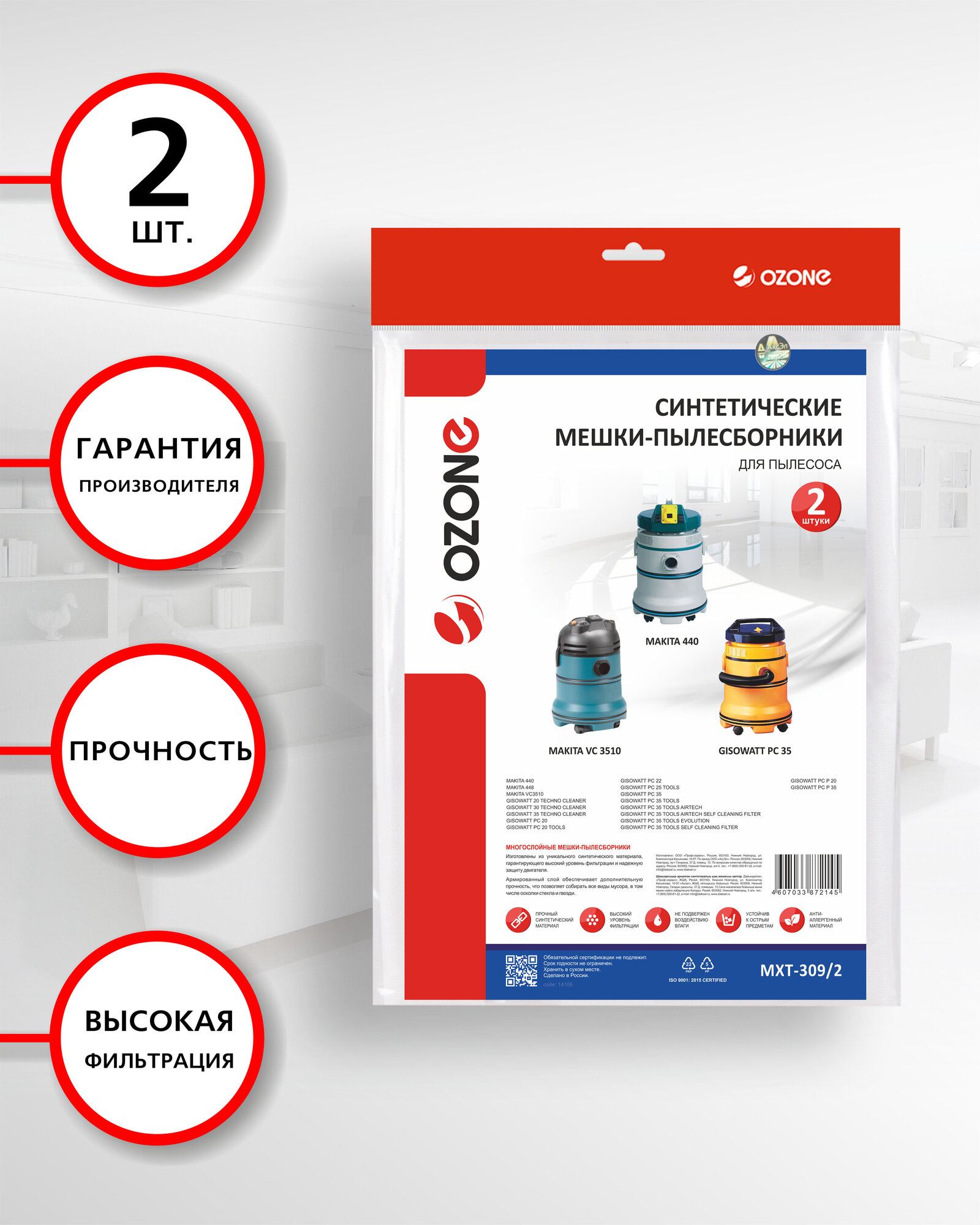 Мешки тканевые для пылесоса Ozone MXT-309/2, 2.08 л, 2 шт интересное: