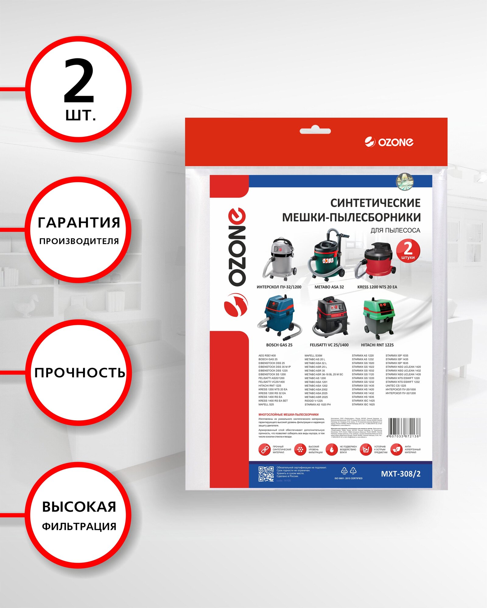 Ozone Мешки для пылесоса BOSCH GAS 25, KRESS 1400, ИНТЕРСКОЛ ПУ-32/1200, STARMIX FB20/25/35, AEG, FELISATTI, HITACHI, METABO, 5 шт., синтетические, не боятся мокрой пыли, Ozone MXT-308/5