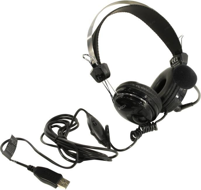 Наушники с микрофоном A4Tech HU-7P, stereo, 20Hz-20kHz, 32Ohm, 97dB, 2м, USB Type-A, черный