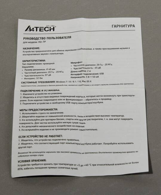 | Отзыв: | В комплекте с наушниками шли - держатель для них, инструкция небольшая, и сами A4 Tech HU-7P. Держатель я не использую вообще, инструкция куда-то закопана в долгом ящике, а наушники активно используются по сей день. |