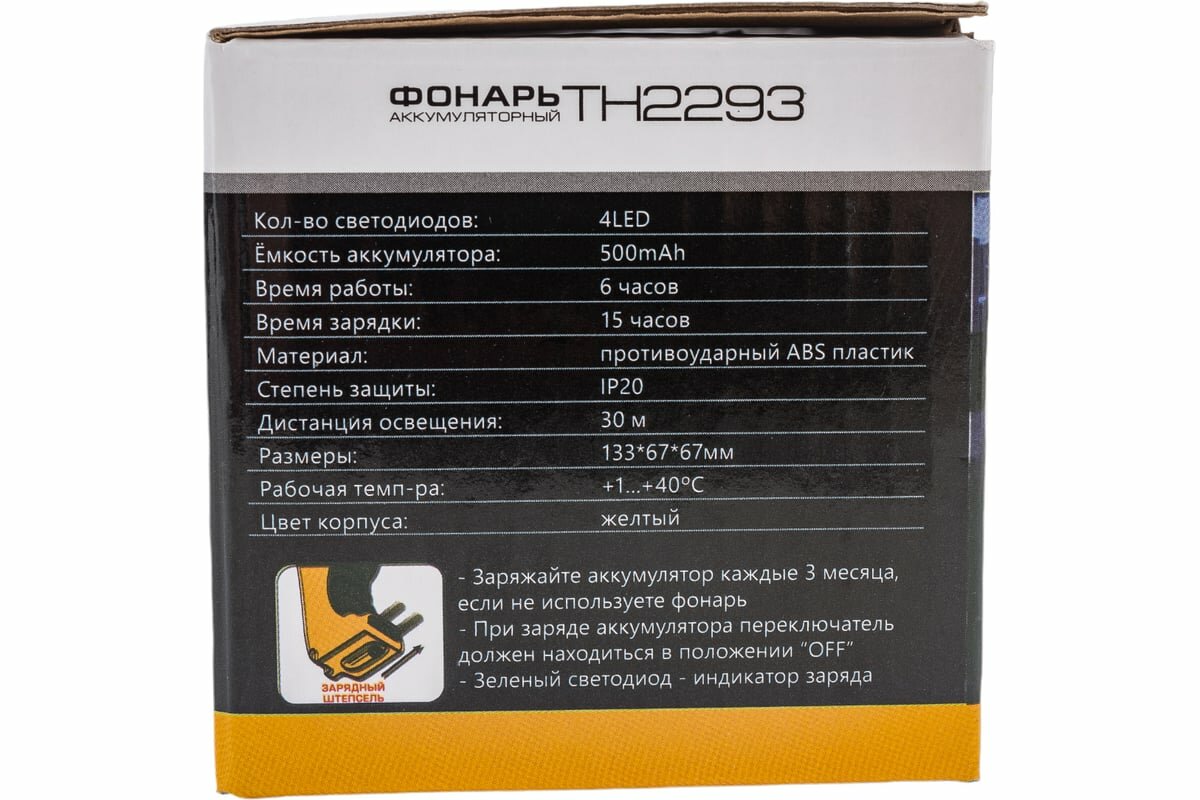 Фонарь аккумуляторный, 4 LED DC (свинцово-кислотная батарея), желтый, TH2293 (TH93A), 12651