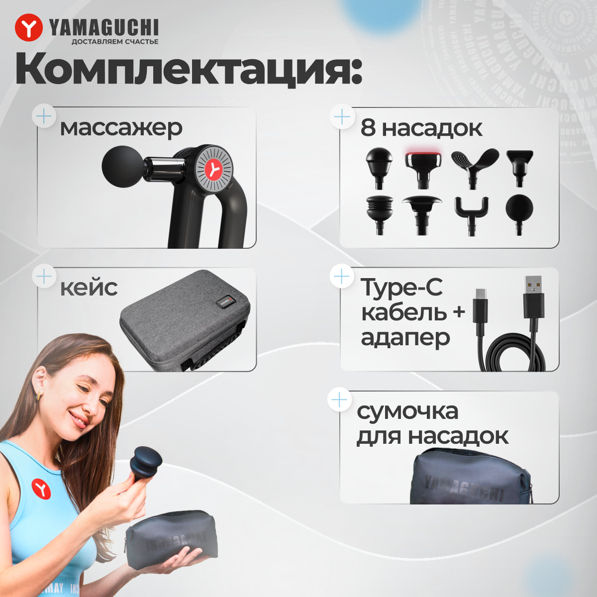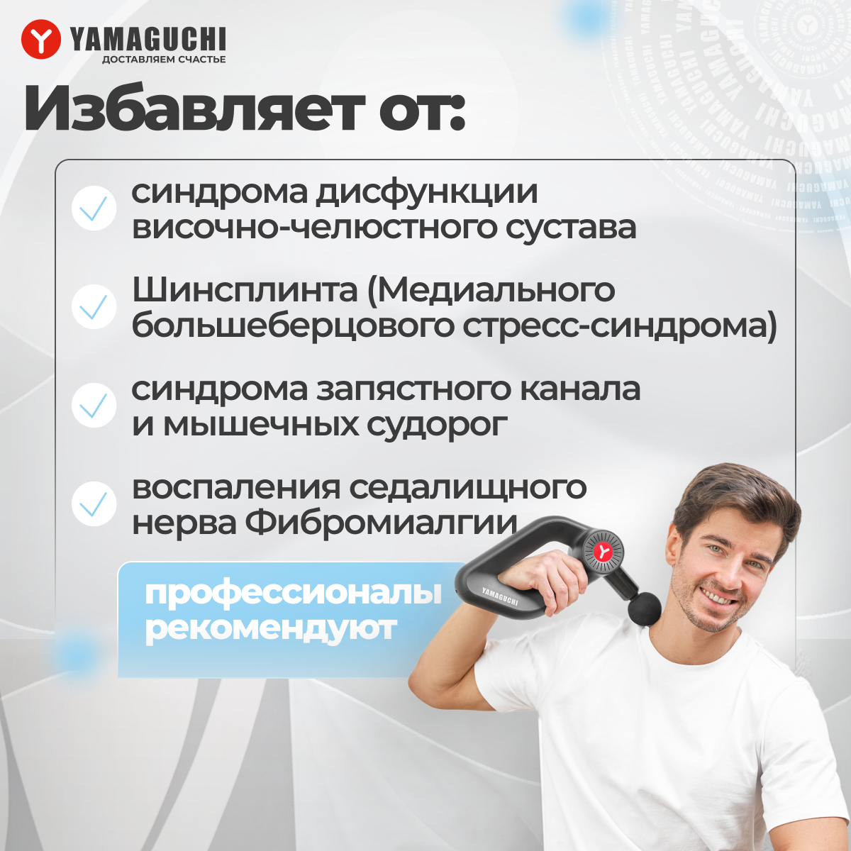 Yamaguchi/ Массажный пистолет/ Ударный массажер/ Массажер-пистолет/ Перкуссионный массажер Massage Gun PRO