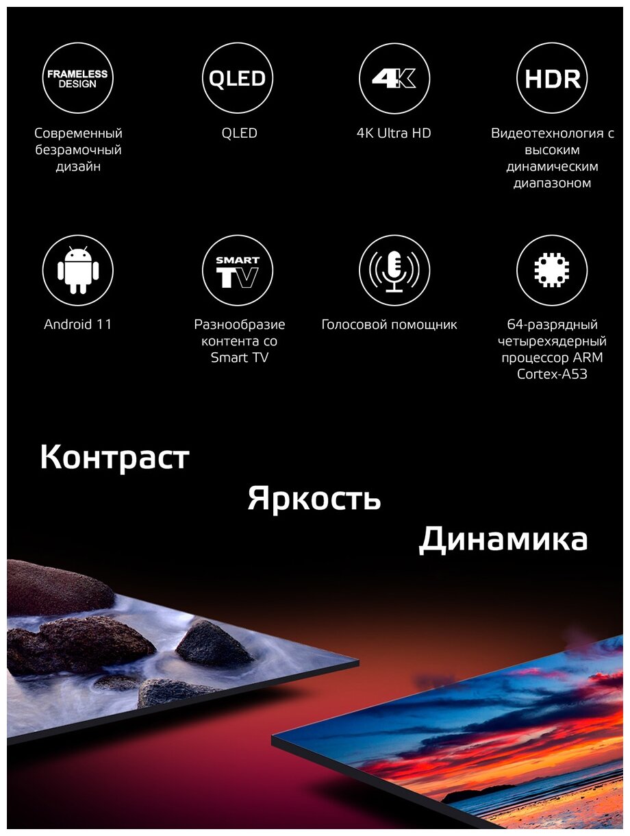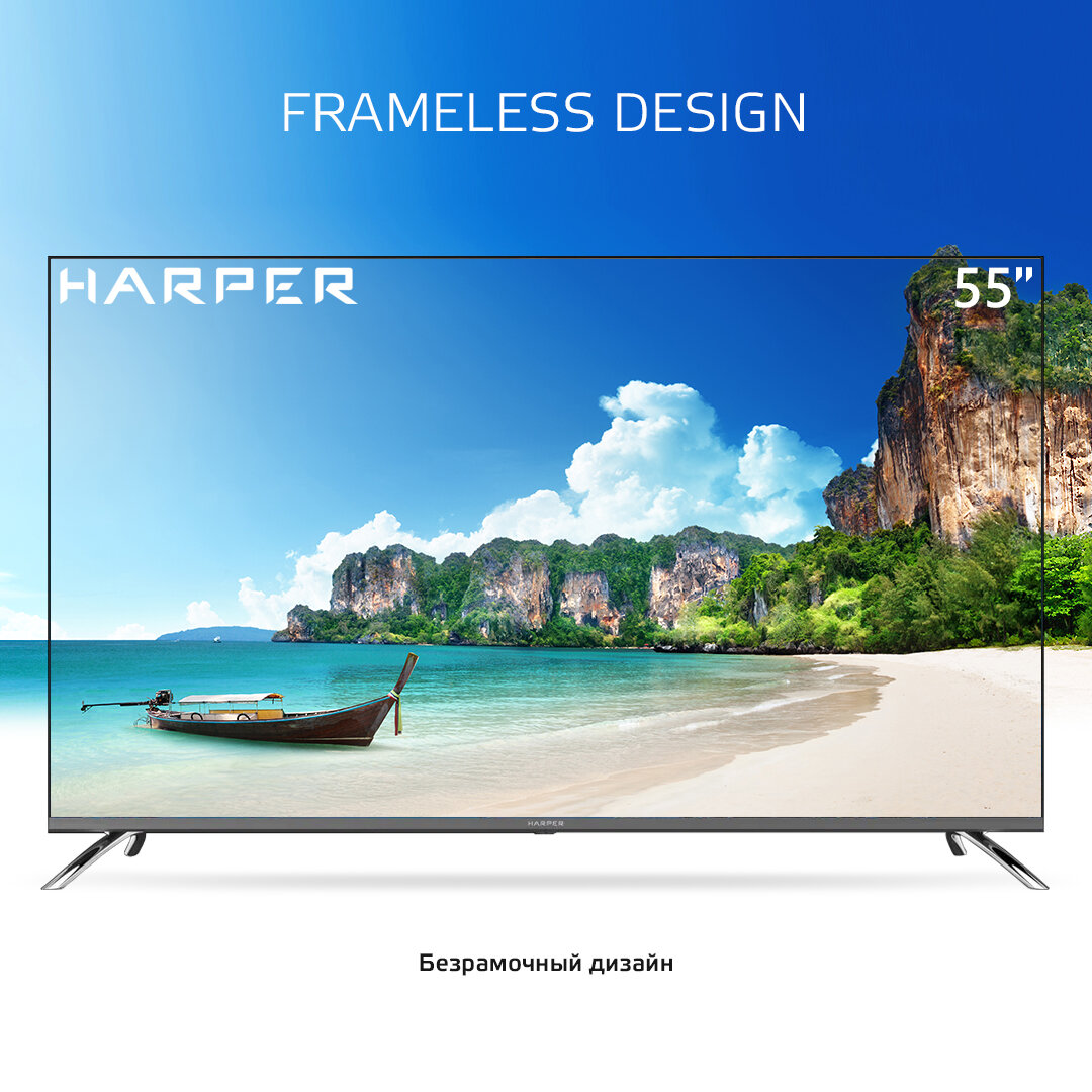 Телевизор 55" Harper QLED 55Q850TS {UltraHD 4K, HDR, Android 11 (AOSP), Frameless}