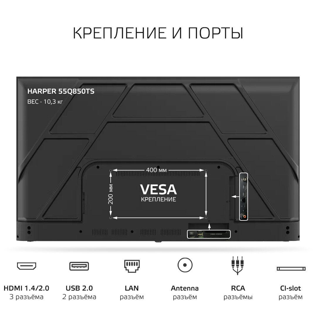 Телевизор 55" Harper 55Q850TS (4K UHD 3840x2160, Smart TV) черный