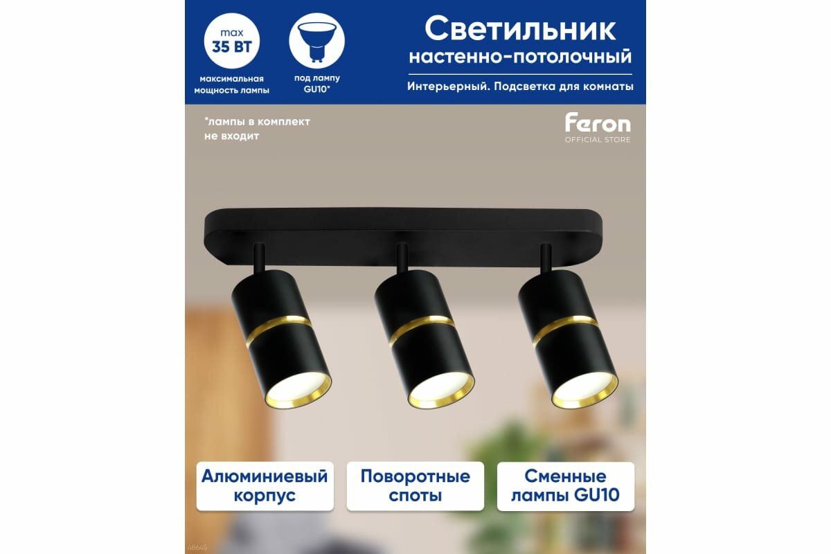 Светильник Feron ML1863 ZEN настенно-потолочный под лампу GU10, чёрный, золото