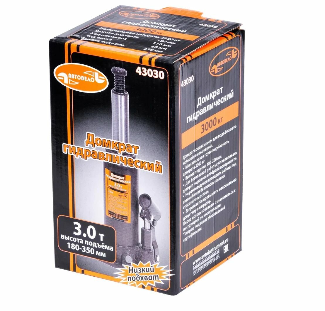Домкрат бутылочный (3 т) (180-350 мм) "АвтоDело" автодело 43030 | цена за 1 шт | минимальный заказ 1