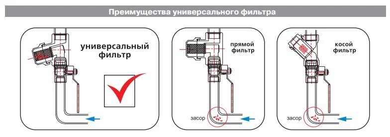 | Плюсы: | Универсальность. Единственный фильтр который можно устанавливать на вертикальный стояк с подводом снизу |