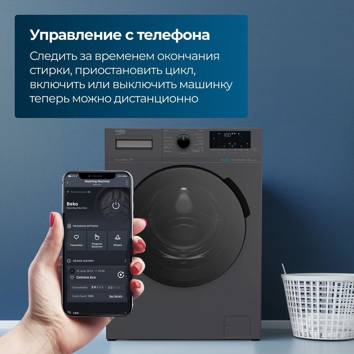 Стиральная машина Beko, инверторный двигатель, 15 программ стирки, управление смартфоном, 6,5кг загрузки интересное: