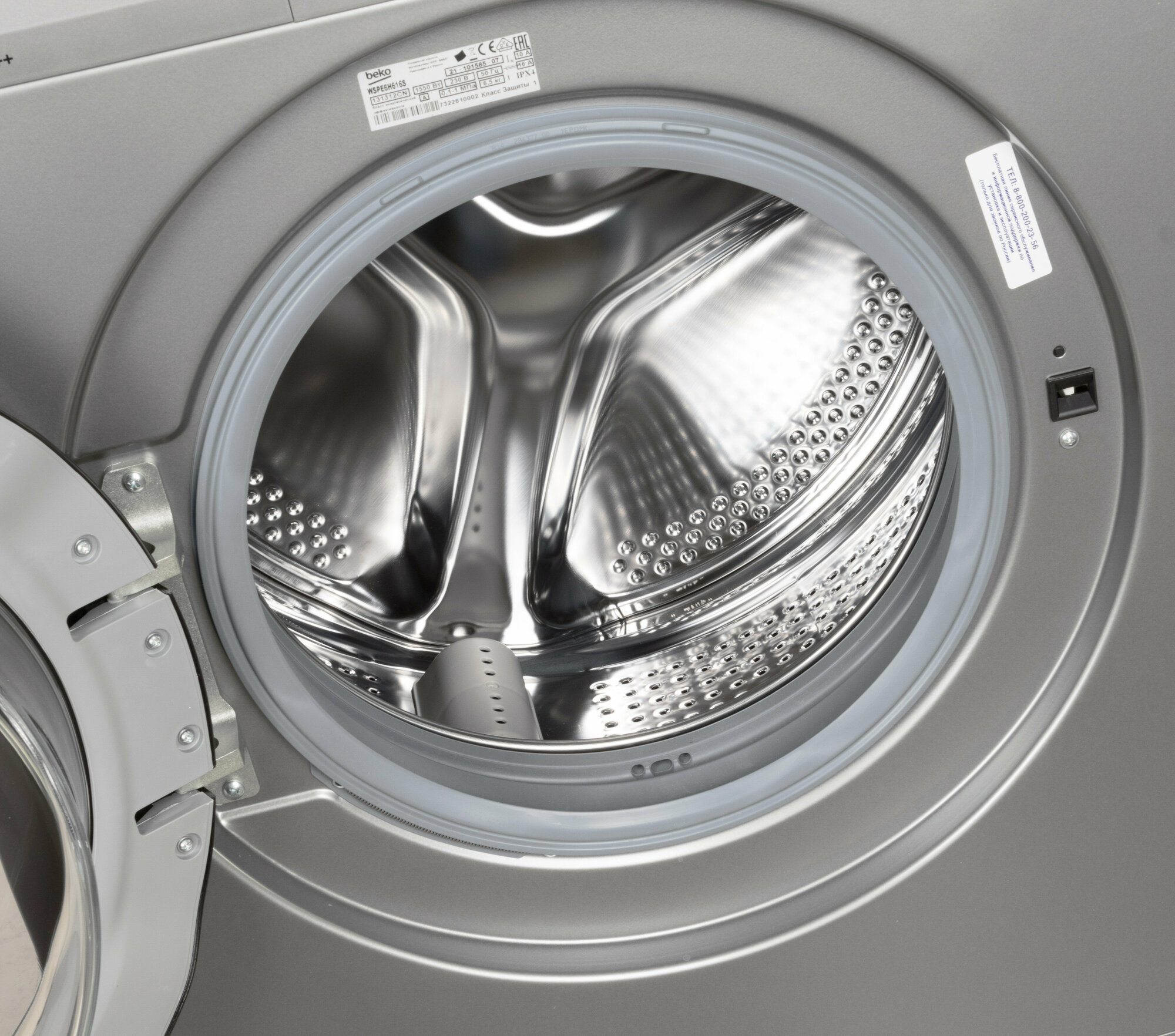 Стиральная машина Beko WSPE6H616S серебристый корпус, черный люк, фронтальная загрузка до 6.5кг, максимальная скорость отжима 1200об/мин