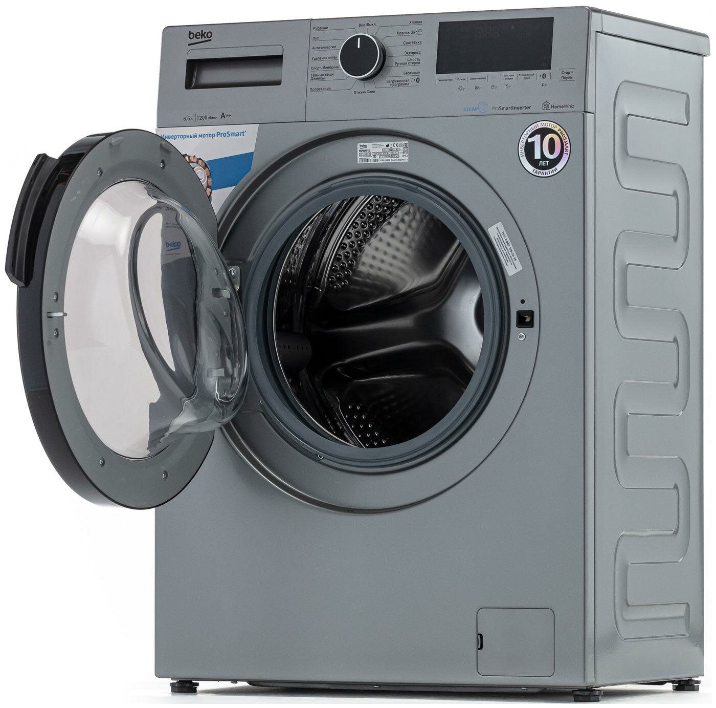 Стиральная машина Beko WSPE6H616S серебристый корпус, черный люк, фронтальная загрузка до 6.5кг, максимальная скорость отжима 1200об/мин