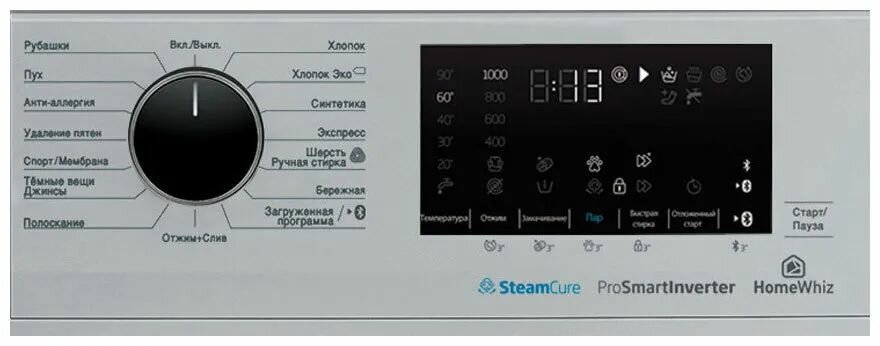 | Плюсы: | Отложенный старт, куча программ, управление с телефона, качество стирки, безопасность. |