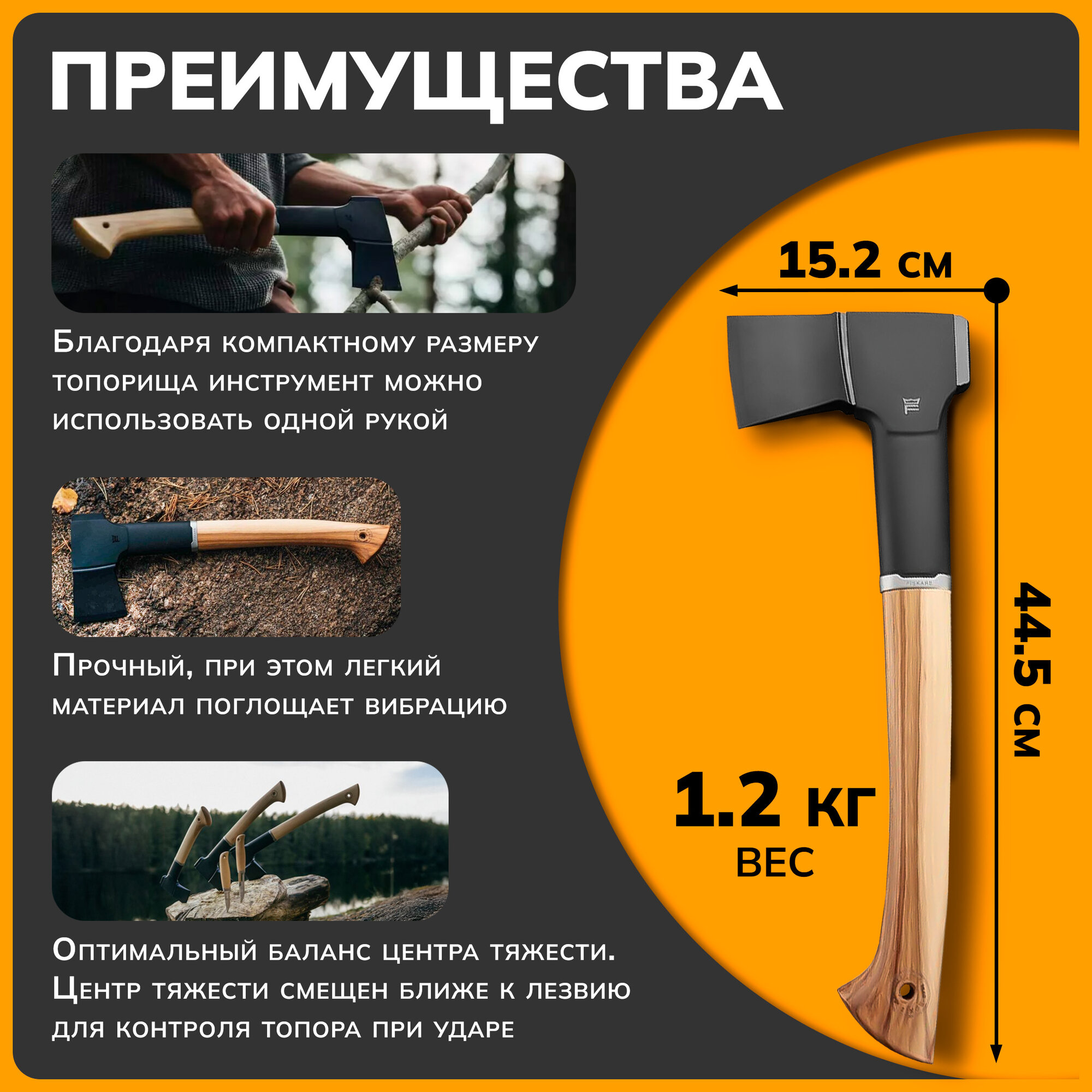 | Минусы: | рубить не пробовал(а он скорее под рубку и заточен), колол дрова и вот для колки не хватает ему веса и угла заточки, приходиться размахиваться. Думаю тесать с ним тоже не очень. В целом выходит что угол заточки, ширина и наклон лезвия делает из него скорее нечто среднее между туристическим и обычным топором. |