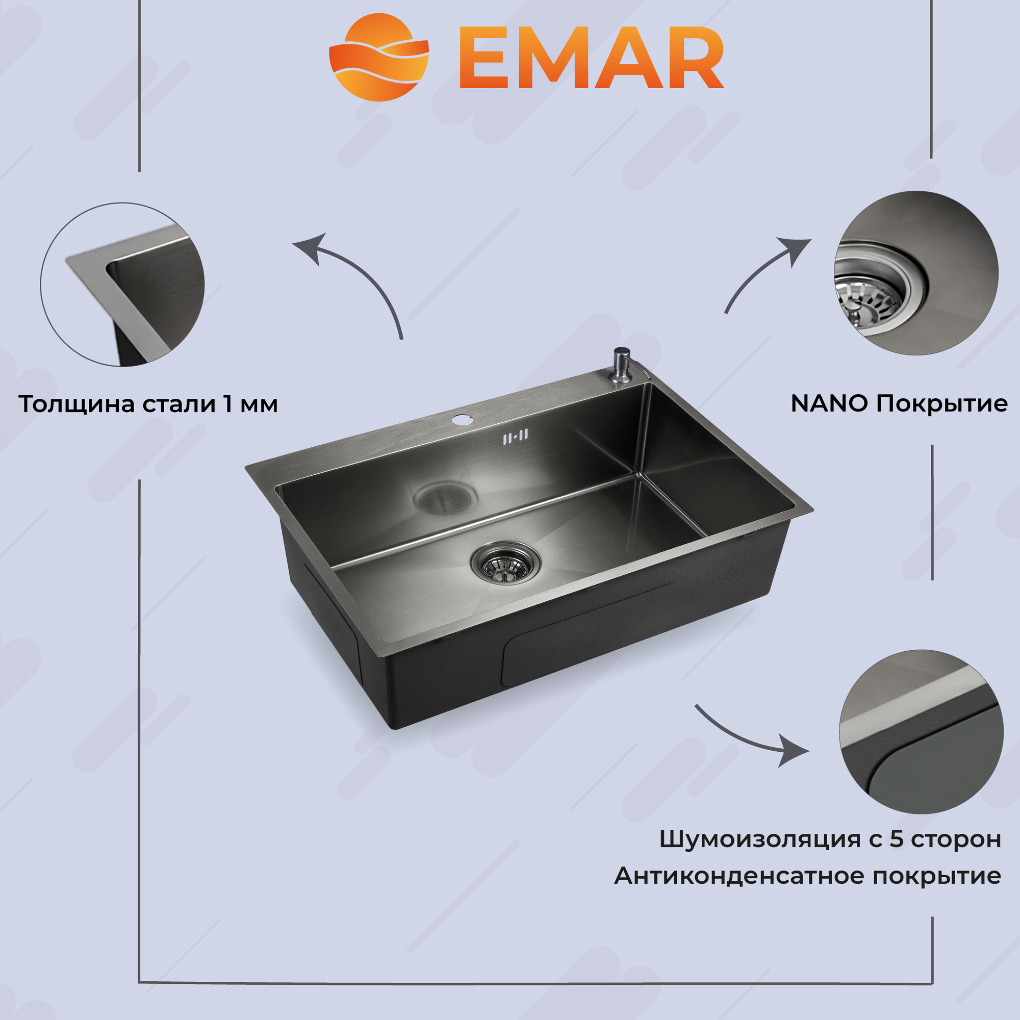 Кухонная мойка EMAR EMB-125A PVD Nano Dark