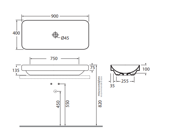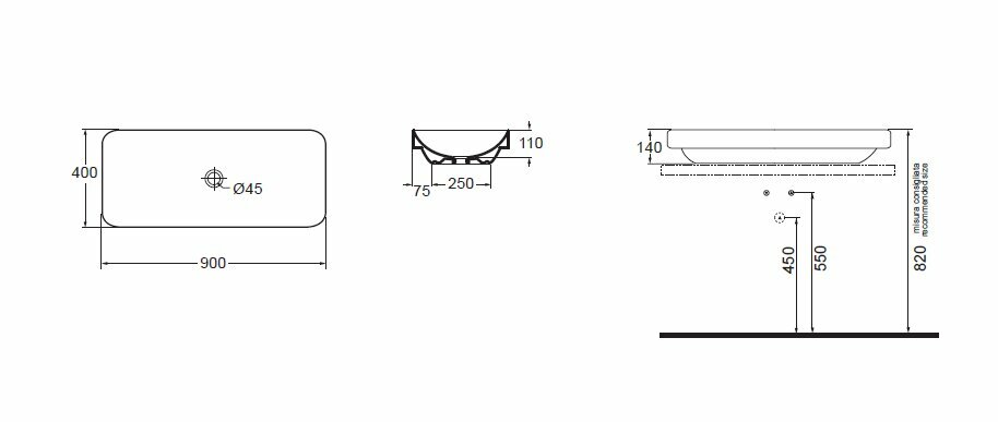 Раковина накладная Azzurra Elegance ELLG090400S0BI/(ESO90 bi)*0
