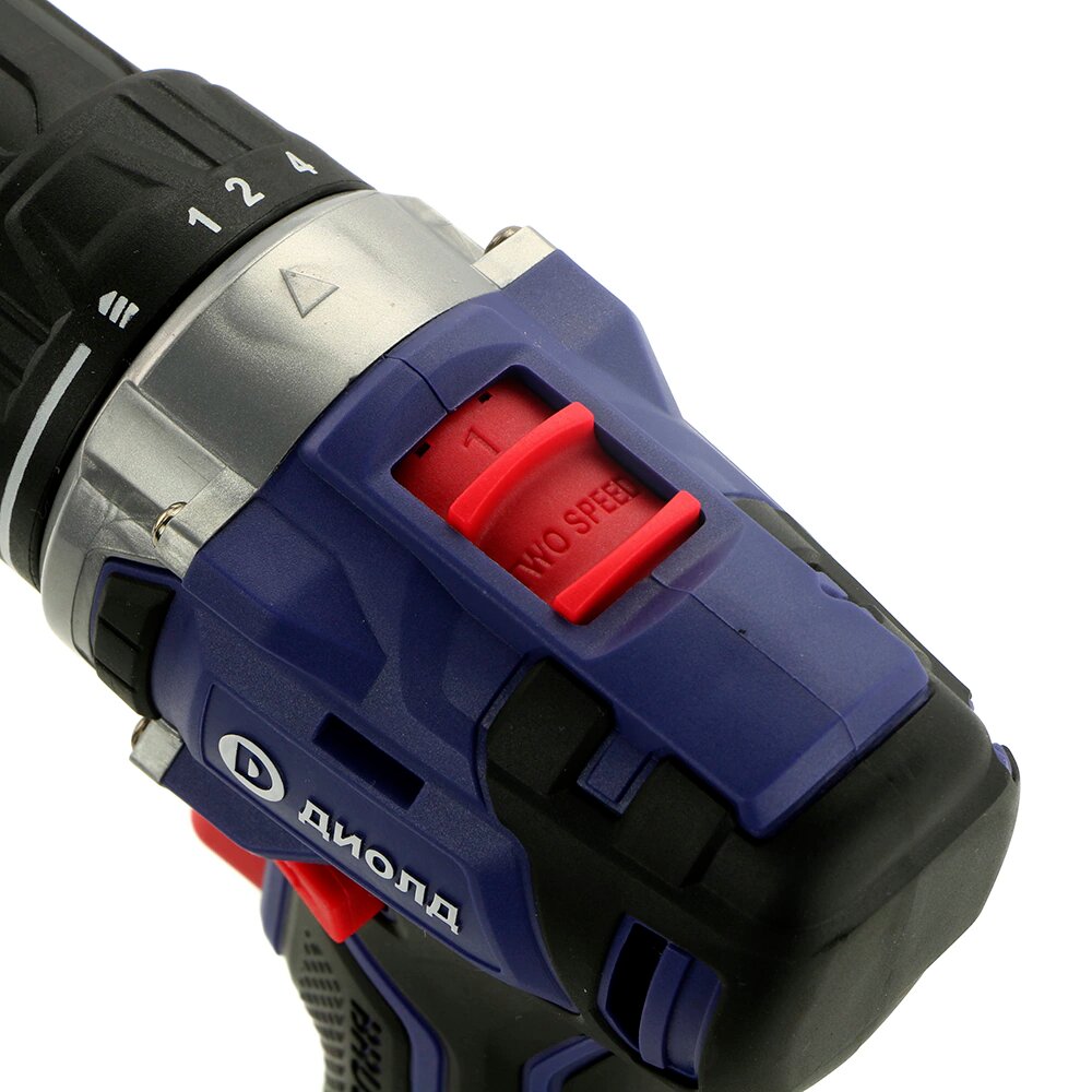 Дрель-шуруповерт аккумуляторная диолд ДЭА-12ЛИ-08, кейс, бесщеточный двигатель, 2 аккум., 2 скор