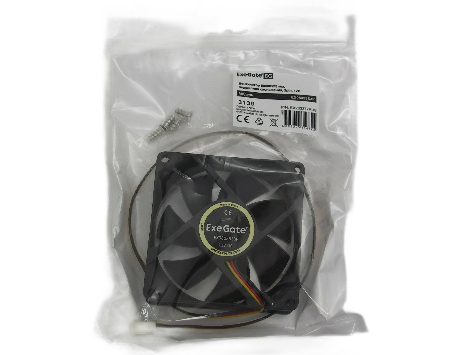 EXEGATE EX283377RUS Вентилятор EX08025S3P, 80x80x25 мм, подшипник скольжения, 3pin, 1800RPM, 23dBA