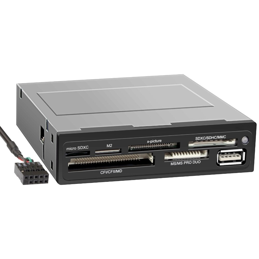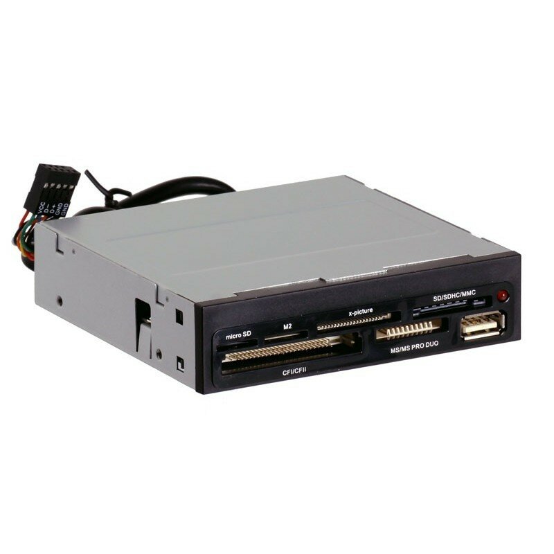 Ginzzu Картридер CF/MD/SDXC/microSD/MMC/MS/M2 Ginzzu GR-136UB, в 3.5 отсек, доп. порт USB, черный (USB2.0) (ret)