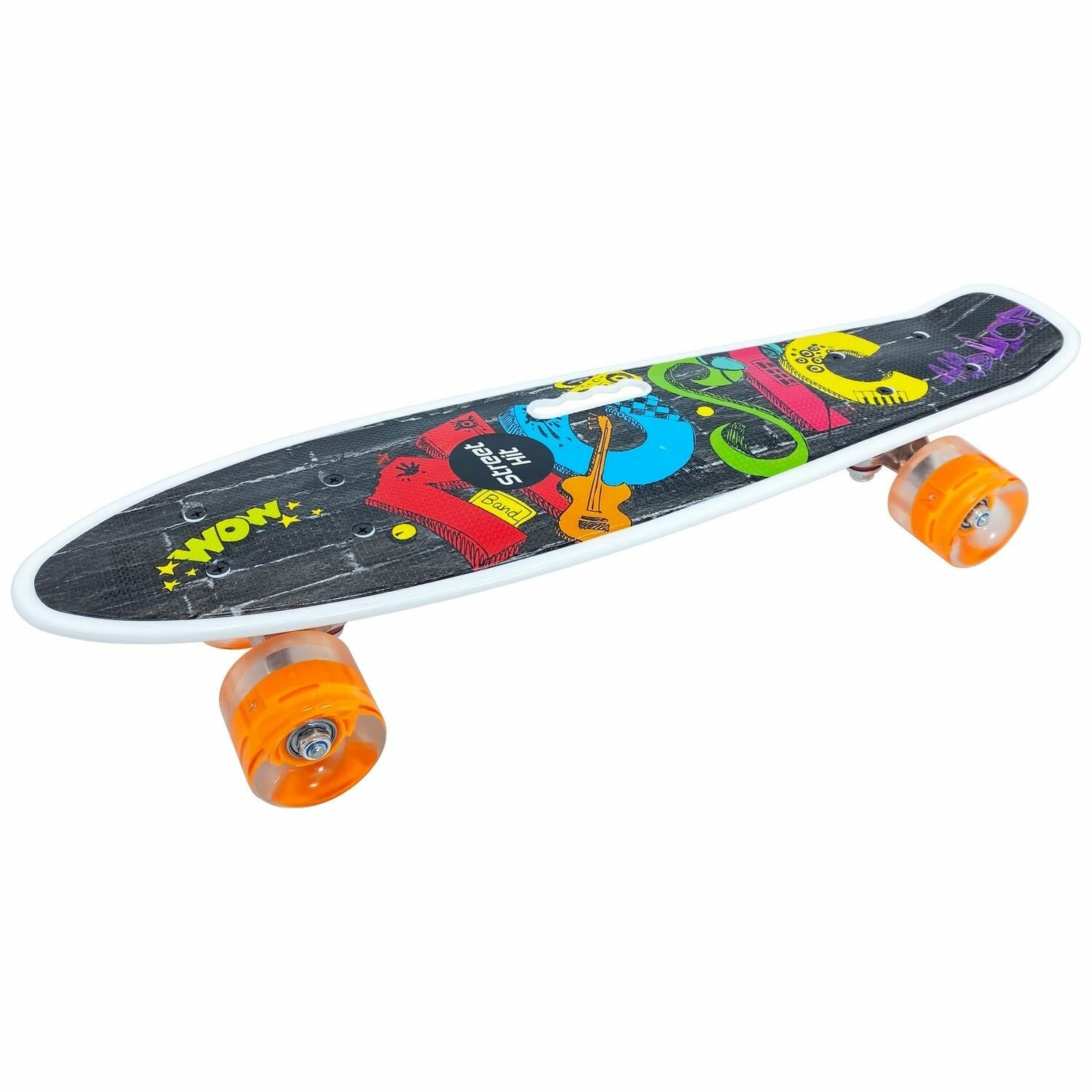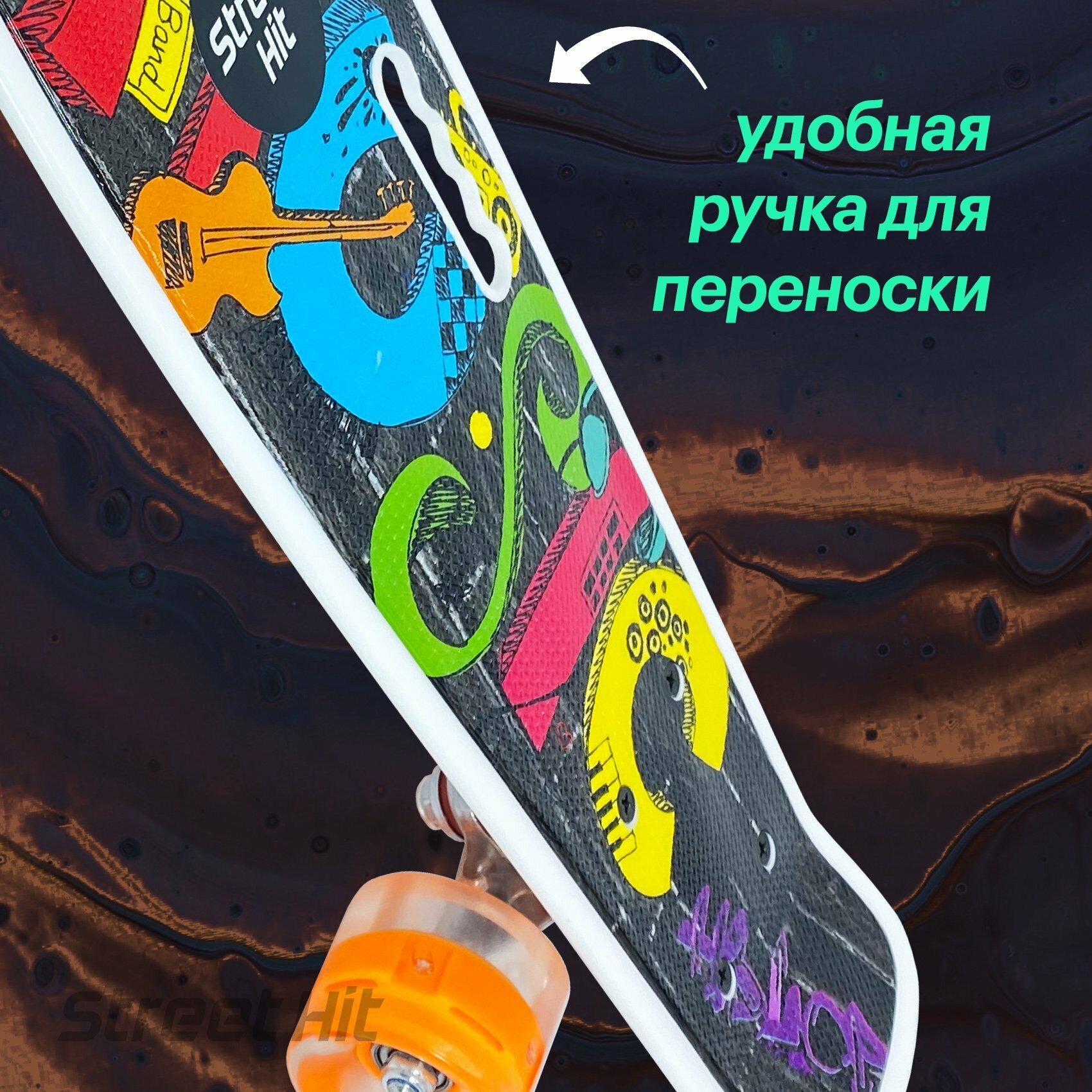Купить Скейтборд пенниборд Мьюзик с ручкой, длина деки 55 см, светящиеся колеса