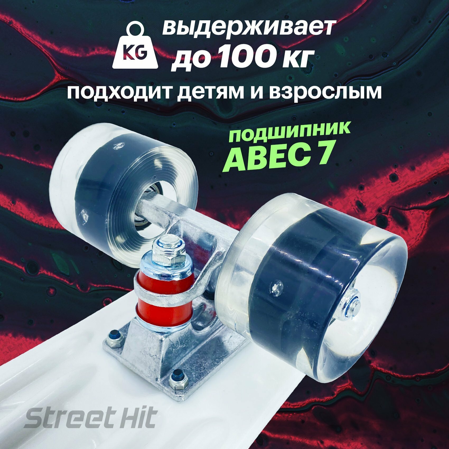Скейтборд пенниборд Череп с ручкой, длина деки 55 см, светящиеся колеса интересное: