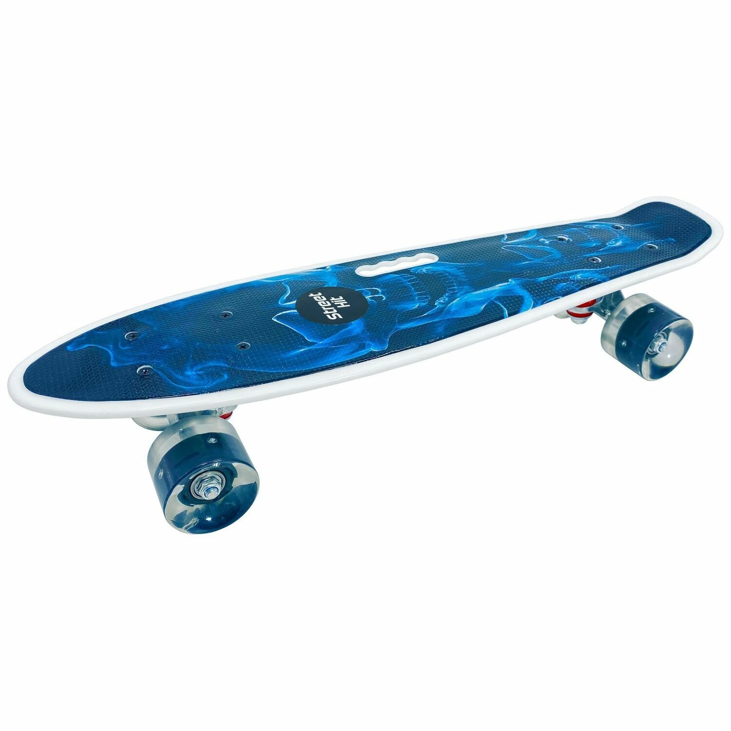 Скейтборд пенниборд Рыбы с ручкой, длина деки 55 см, светящиеся колеса