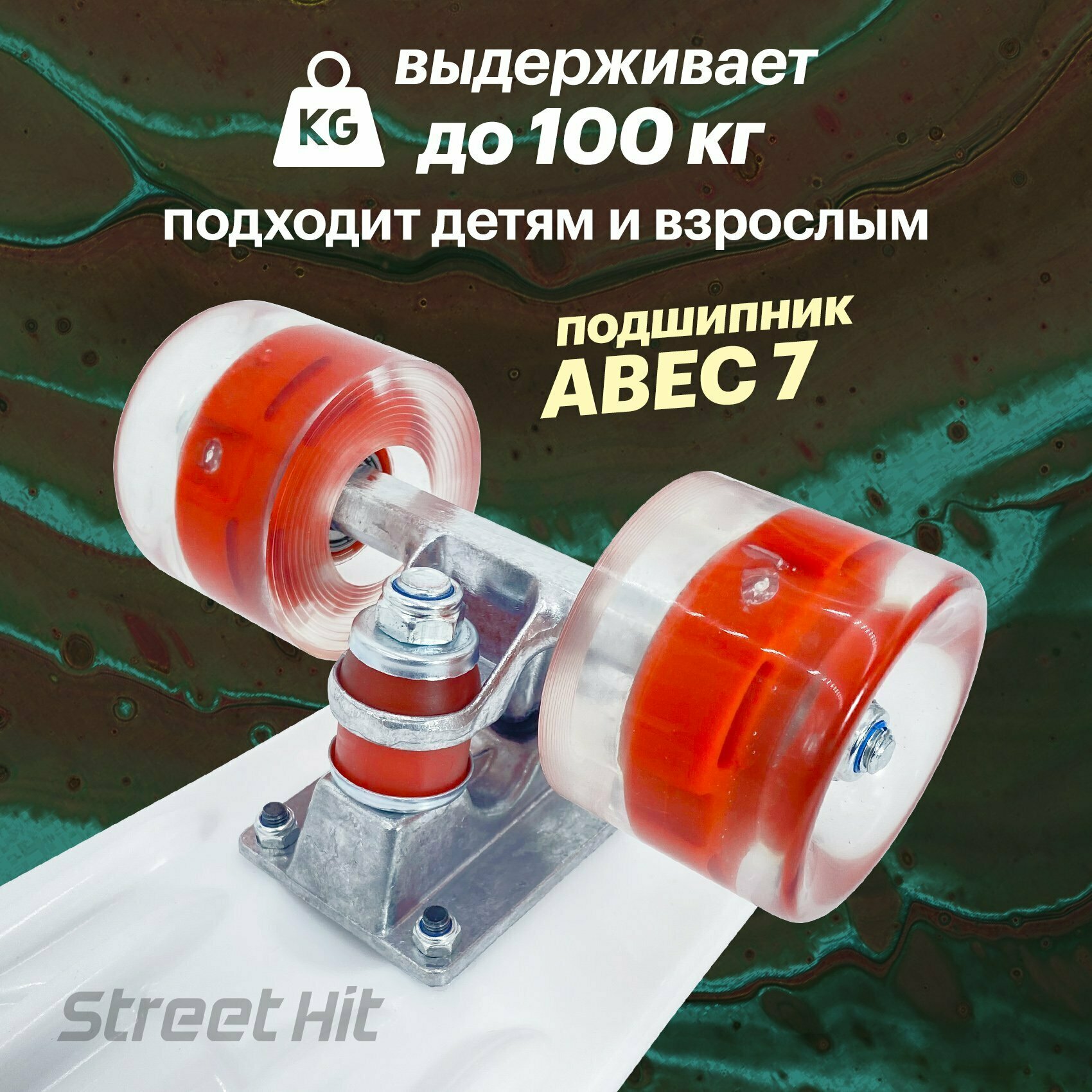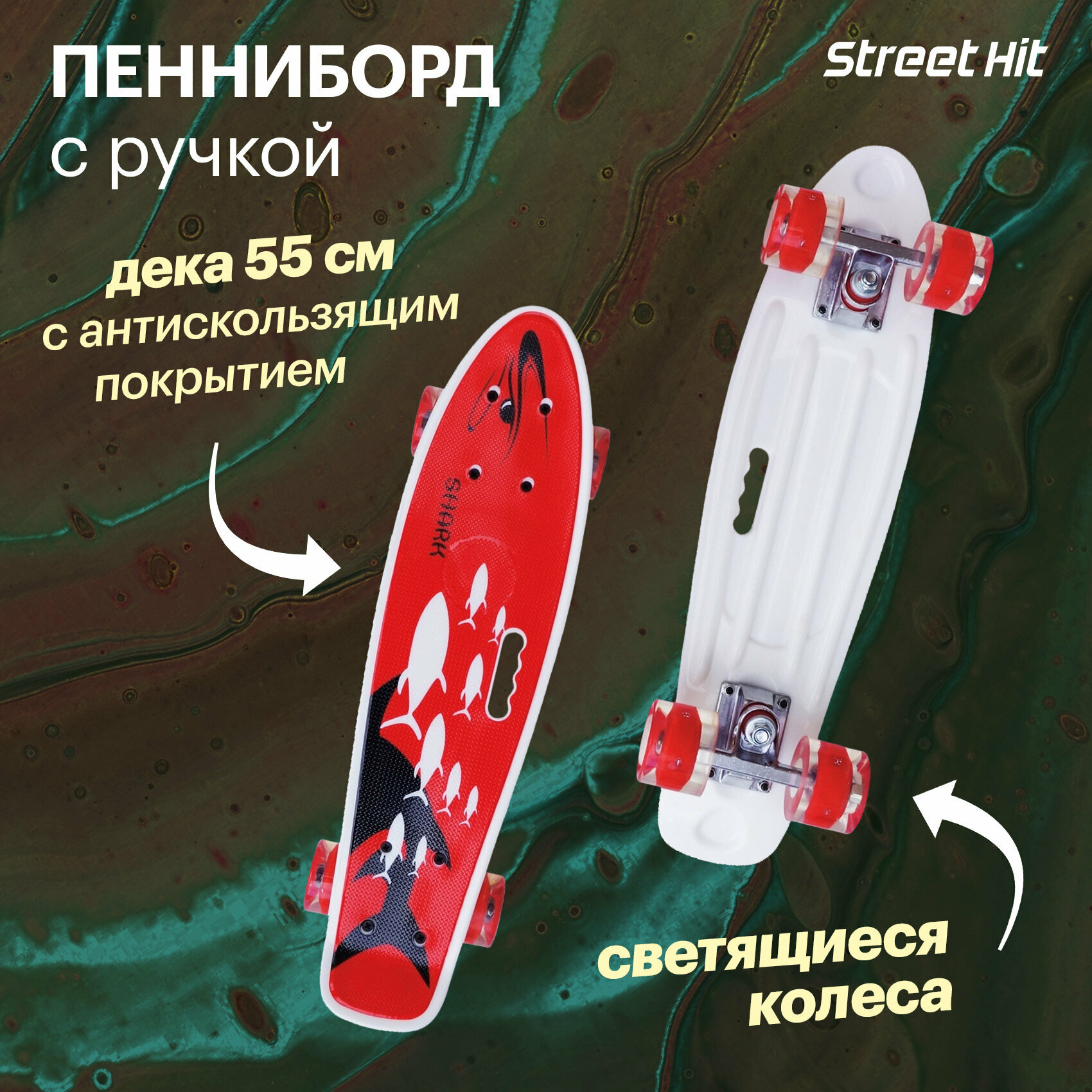 Купить Скейтборд пенниборд Рыбы с ручкой, длина деки 55 см, светящиеся колеса