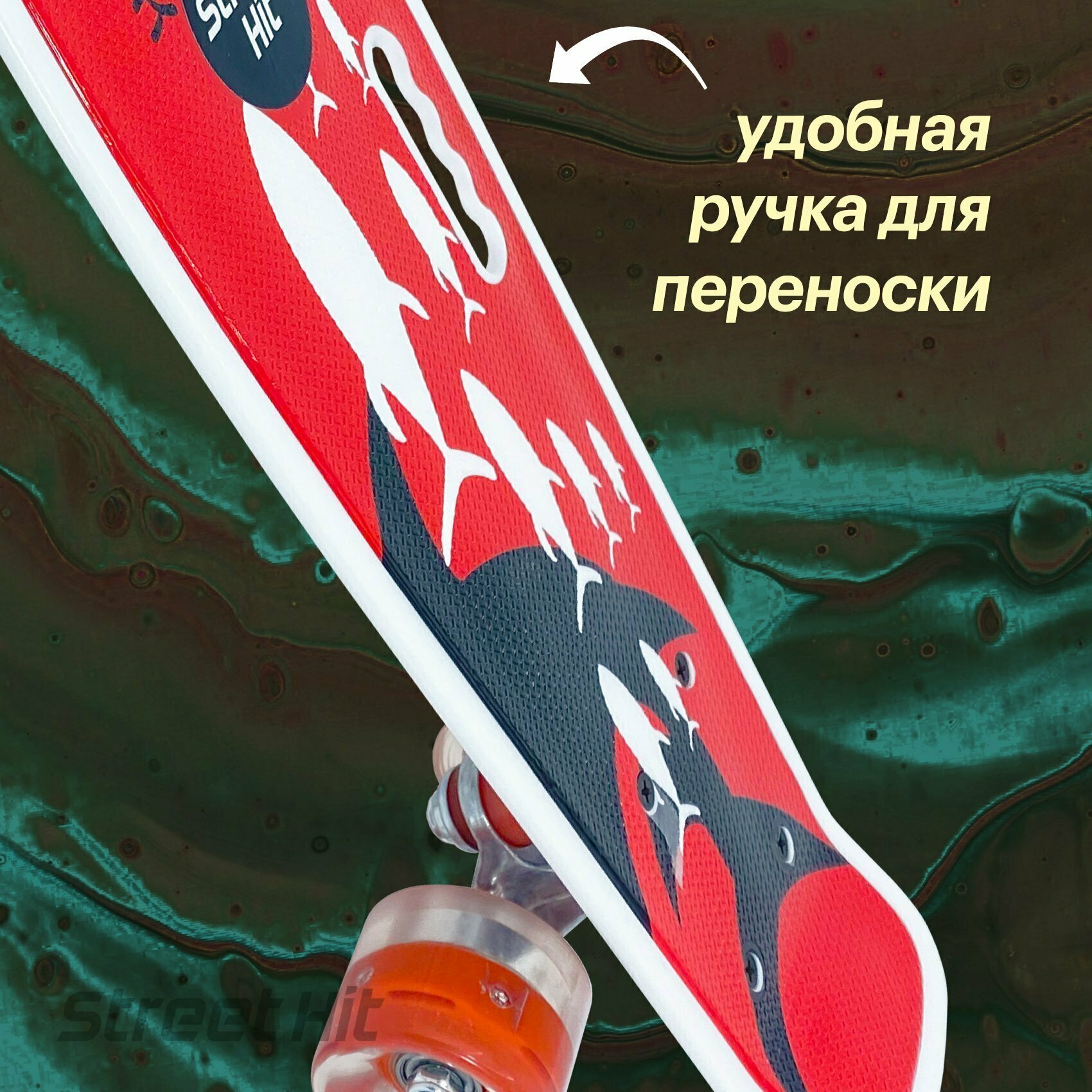 Скейтборд пенниборд Рыбы с ручкой, длина деки 55 см, светящиеся колеса интересное:
