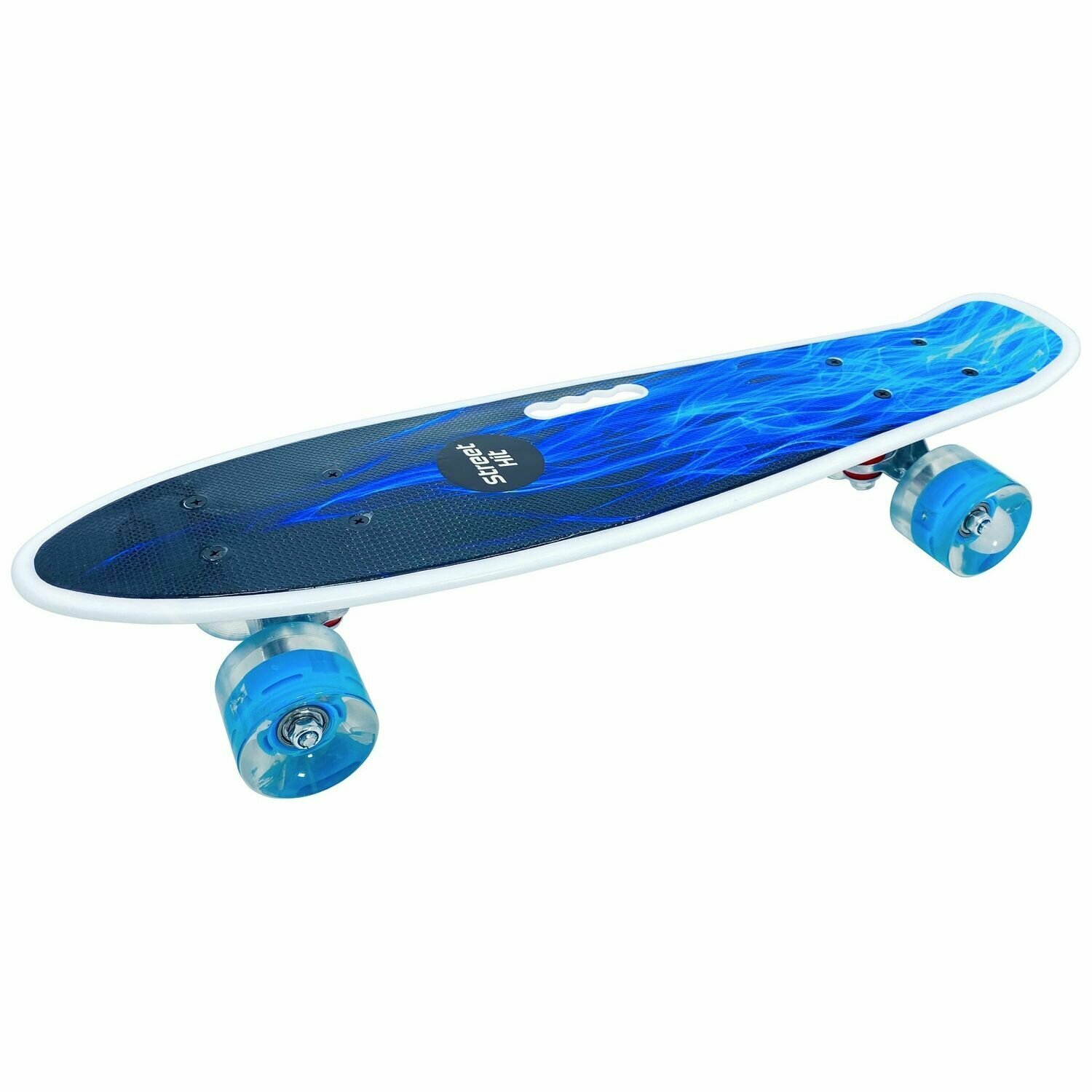 Купить Скейтборд пенниборд Синее Пламя с ручкой, длина деки 55 см, светящиеся колеса