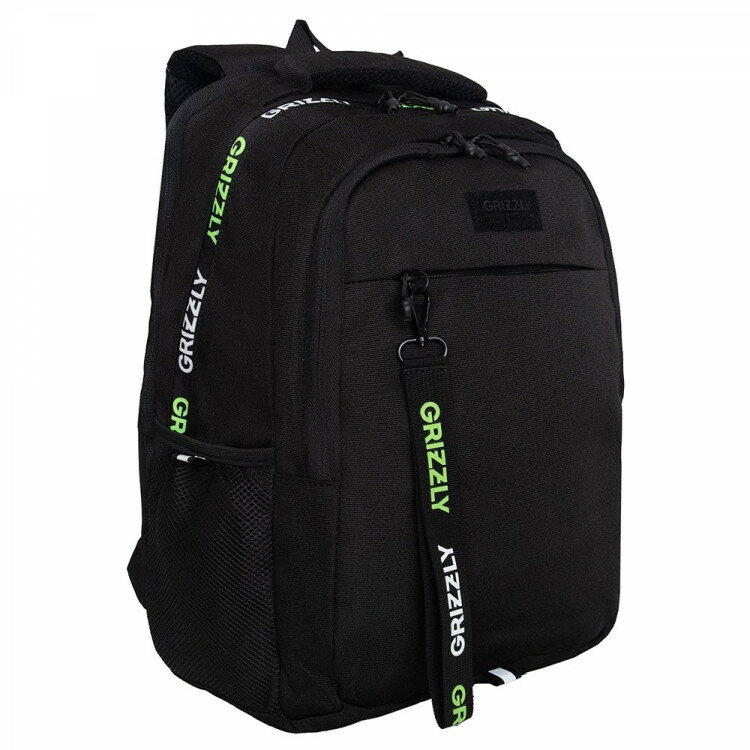 Купить Рюкзак для мальчиков (Grizzly) арт RU-432-3/2 черный-салатовый 31х42х22 см