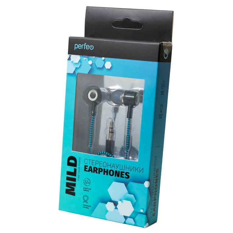 Perfeo наушники внутриканальные MILD черные черно-синий тканевый провод (PF_A4483)