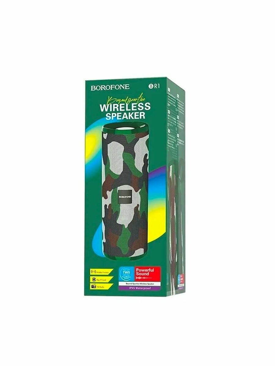 Колонка портативная Borofone BR1, 10ВТ, TWS (Bluetooth/microSD/USB/AUX/FM), камуфляж