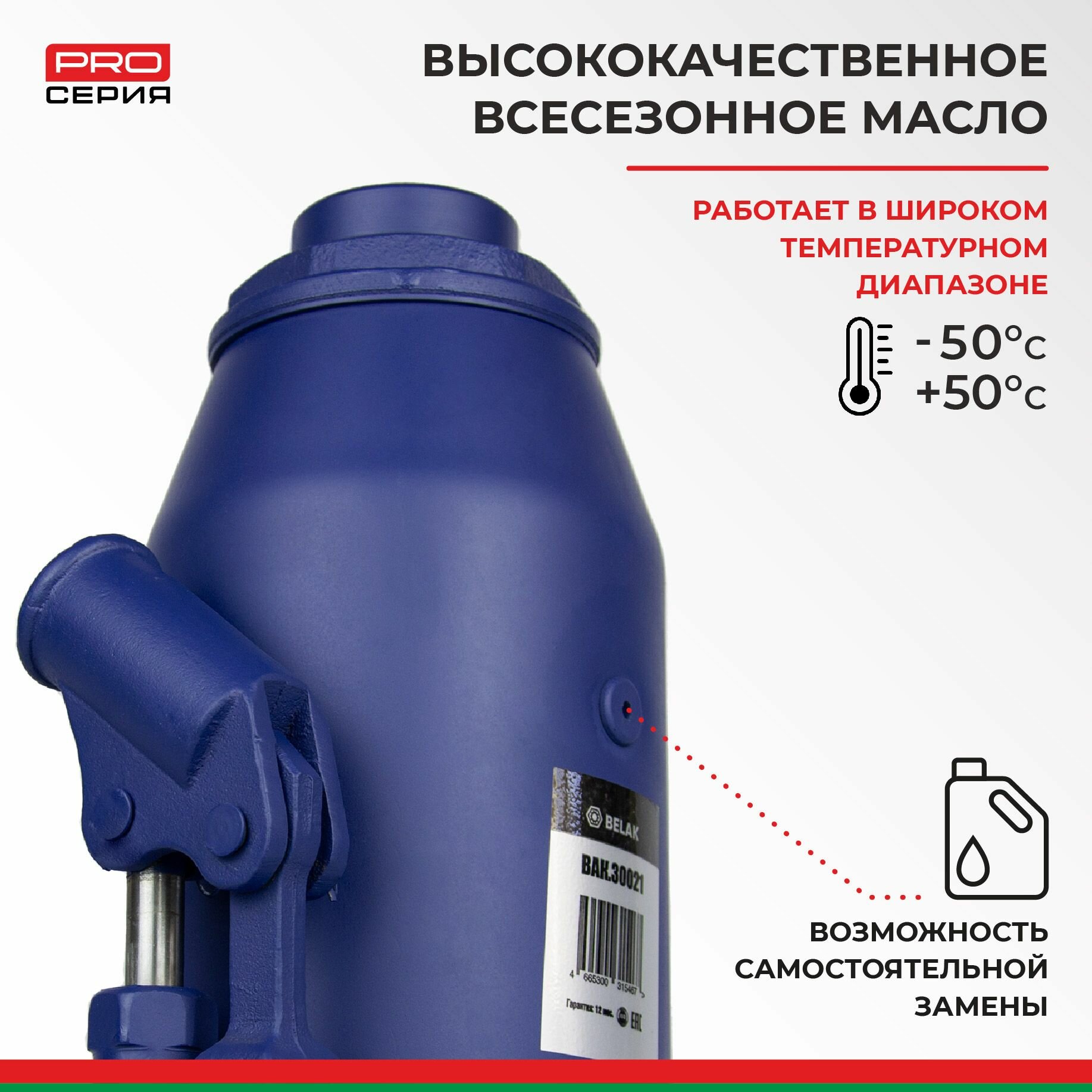 БелАК BAK.30021 домкрат гидравлический бутылочный (30-32)т premium. высота подхвата 285 ммвысота подъёма 465 ммм