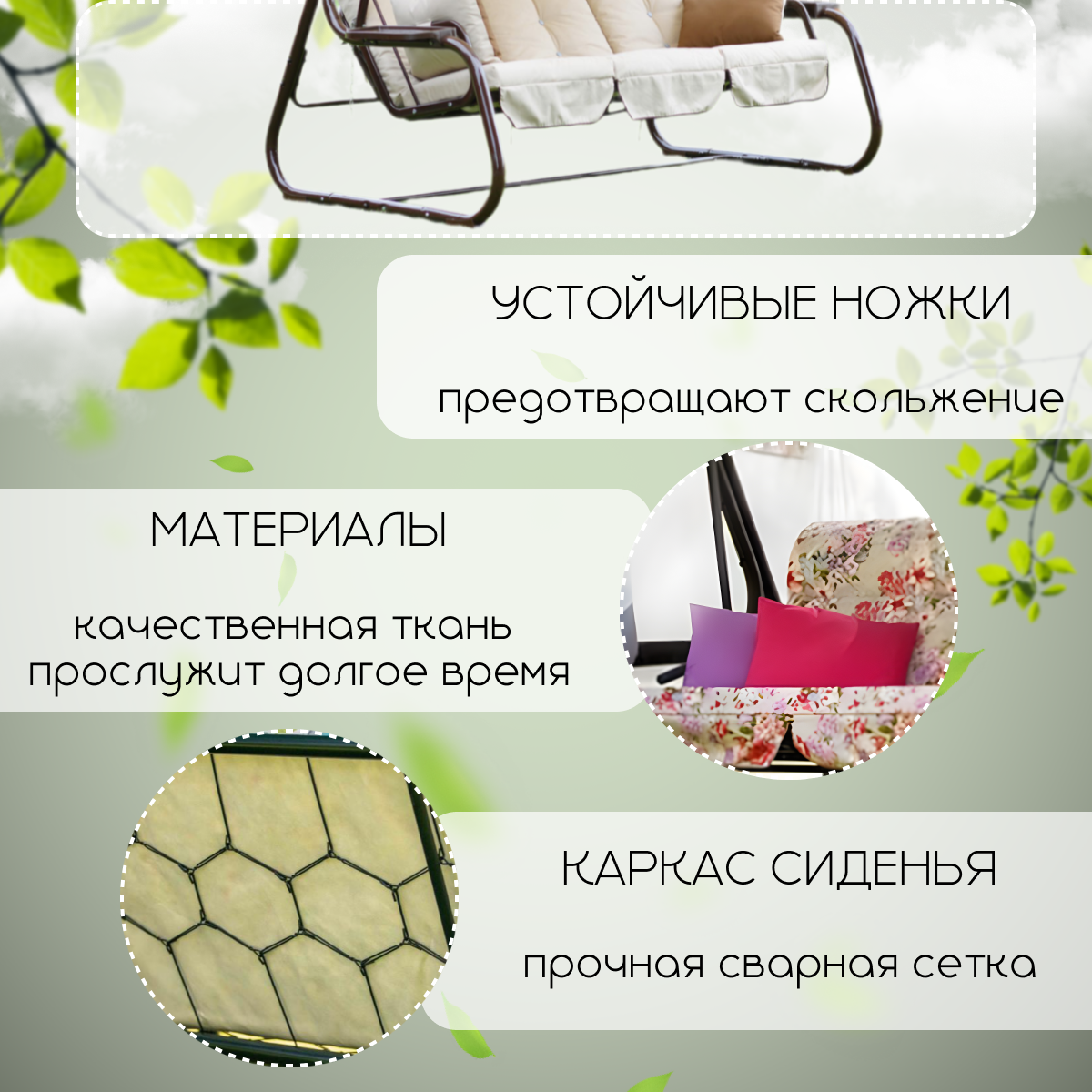 | Плюсы: | Качели мощные, большие, удобные. Сиденье на пружинах. Матрас толстый и плотный. |