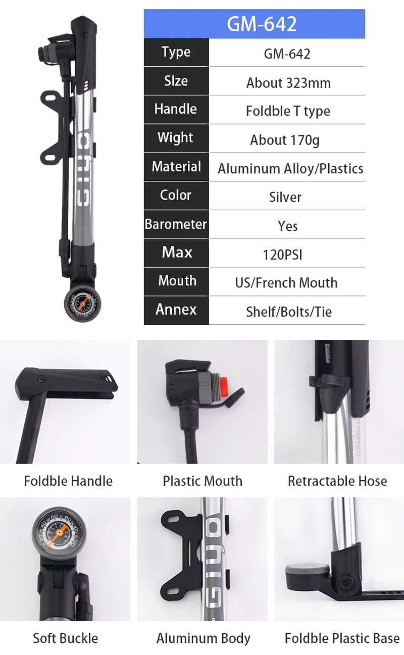 Купить Giyo Насос 6-190071 GM-71 алюм. с маном. с телескоп. шлангом. универ. гол-ка, Т-ручка, с ножным упором, серебрист.