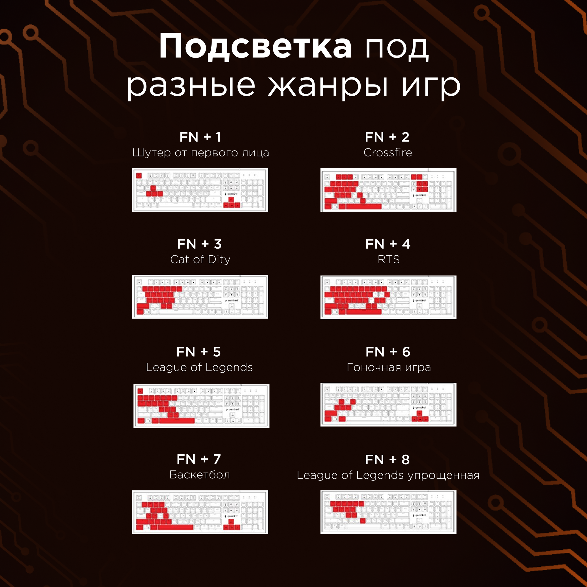 Клавиатура Gembird Chaser Optima Kb-g530l 104КЛ подсветка клавиш .