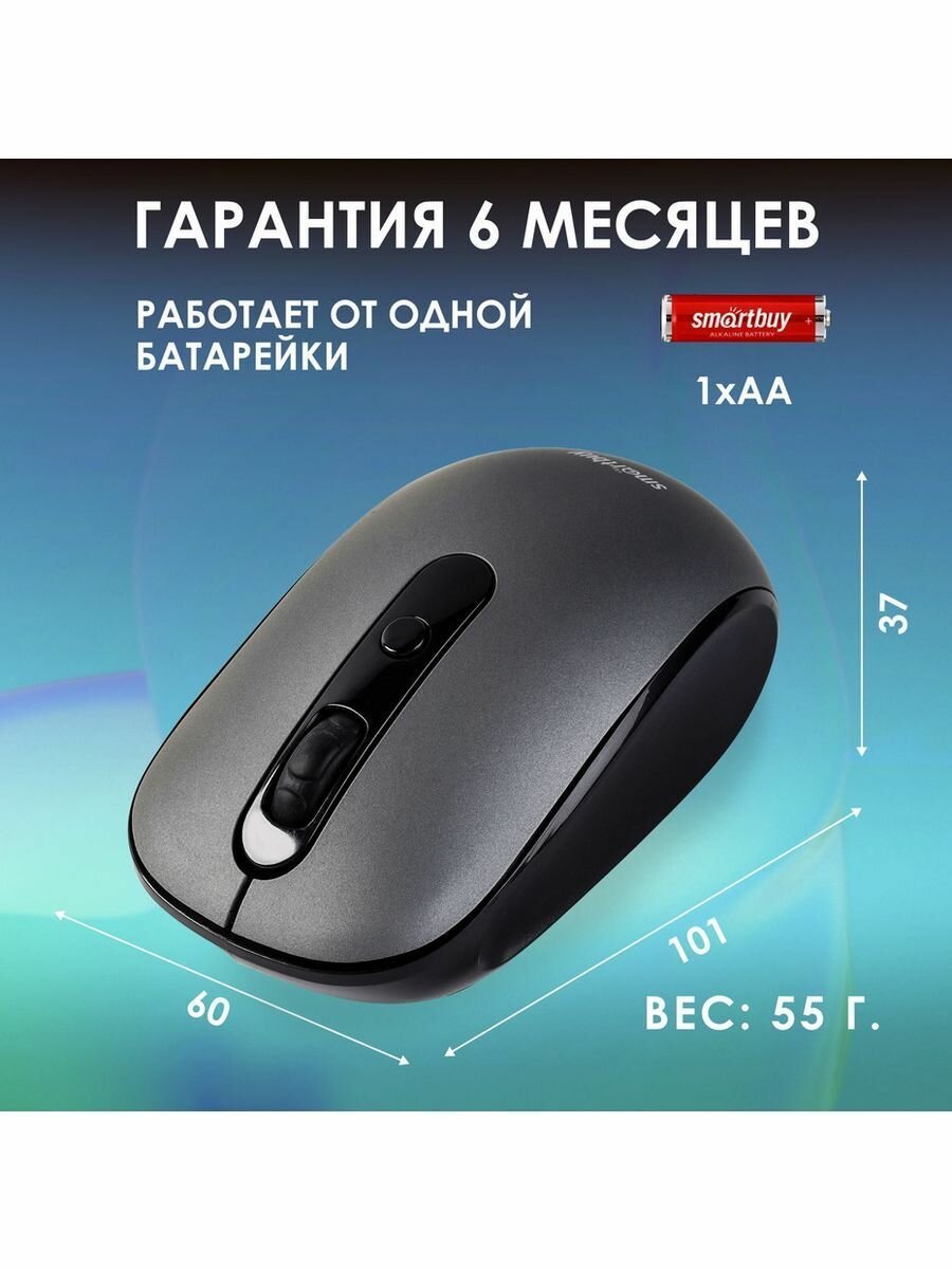 Манипулятор мышь Smartbuy ONE 262AG серебро, бесшумная (SBM-262AG-G) беспроводная - 1 шт.