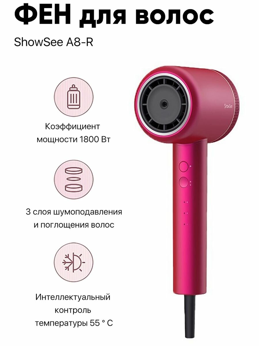 Купить Фен ShowSee A8 High Speed Hair Dryer (Red), красный, мощность 1800 Вт