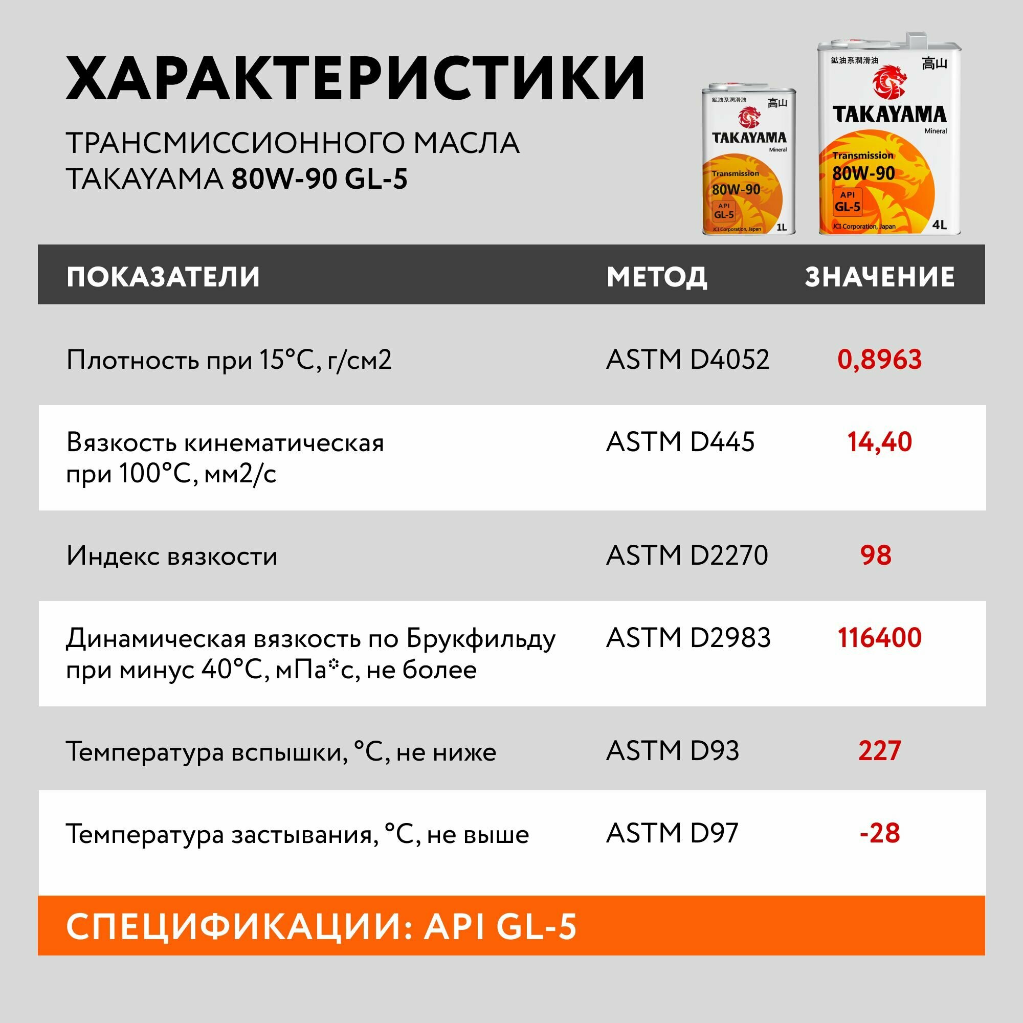 Масло Трансмиссионное 80w90 Takayama 4л Минеральное Api Gl-5 TAKAYAMA арт. 605055
