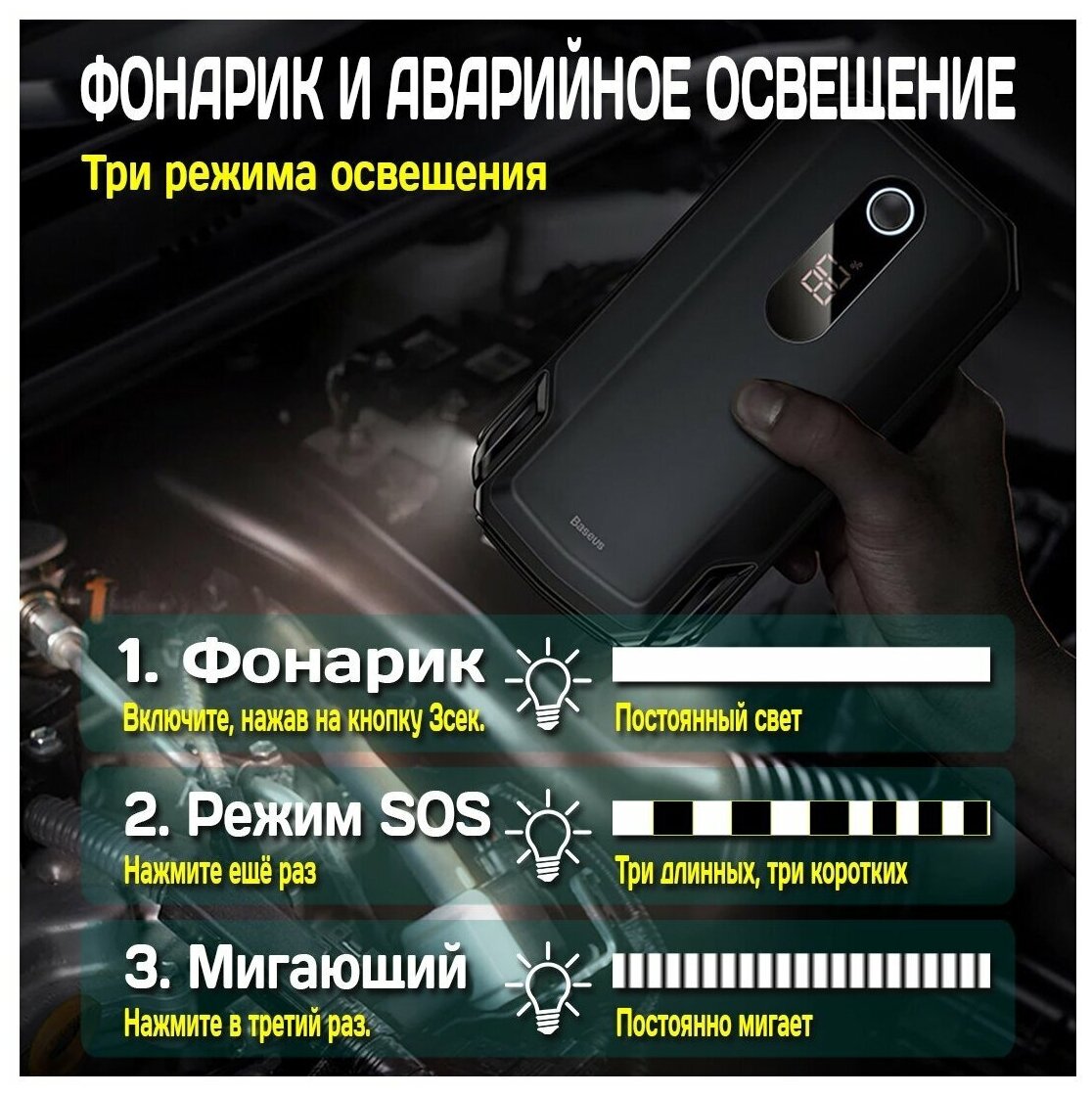 Пусковое зарядное устройство Baseus Super Energy Car Jump Starter PRO + Внешний аккумулятор 12000 мАч + LED фонарь, черный, CRJS03-01