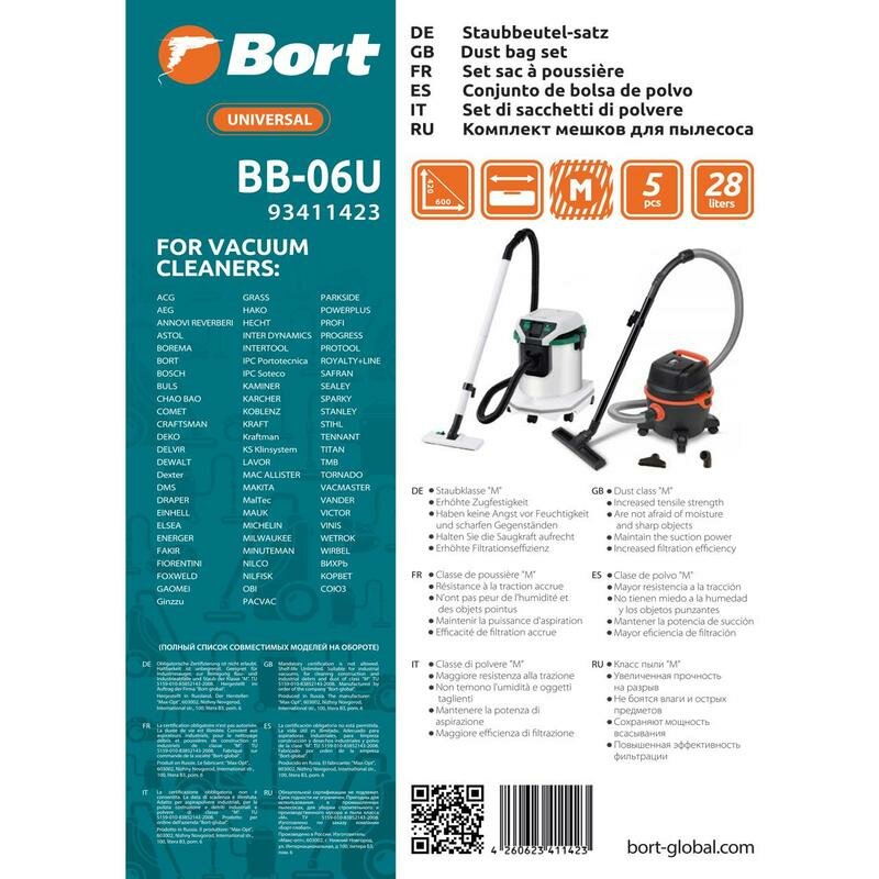 Купить Мешки бумажные для пылесоса Bort BB-06U, 28 л, 5 шт