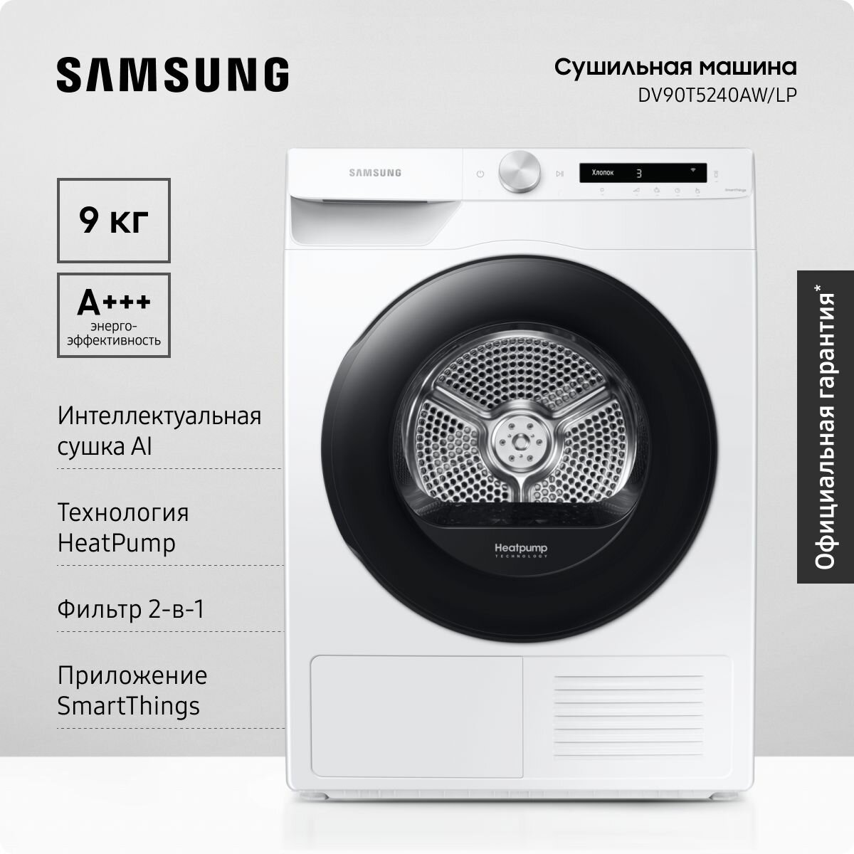Сушильная машина Samsung DV90T5240AW с интеллектуальной панелью, 9 кг