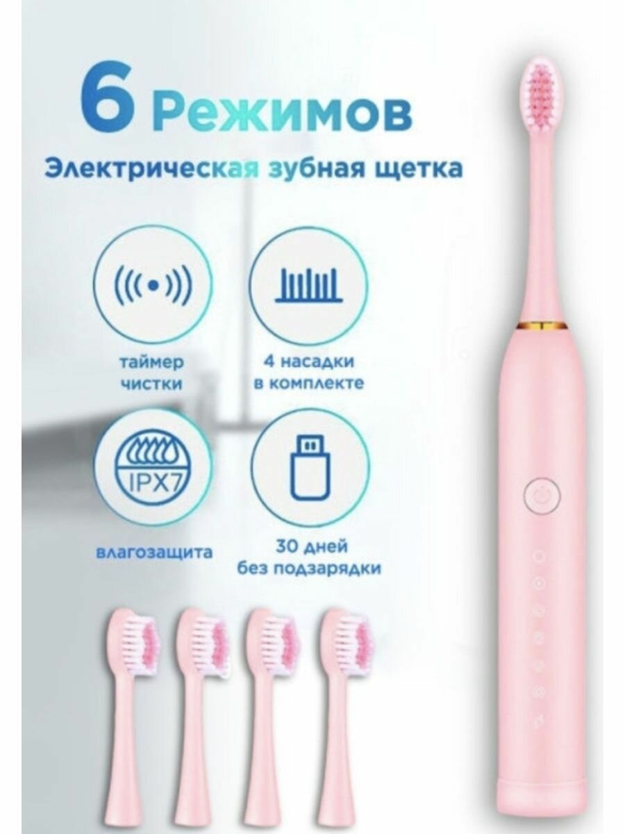 Электрическая зубная щетка SONIC TOOTHBRUSH X-3 / розовая щётка / зубная щётка