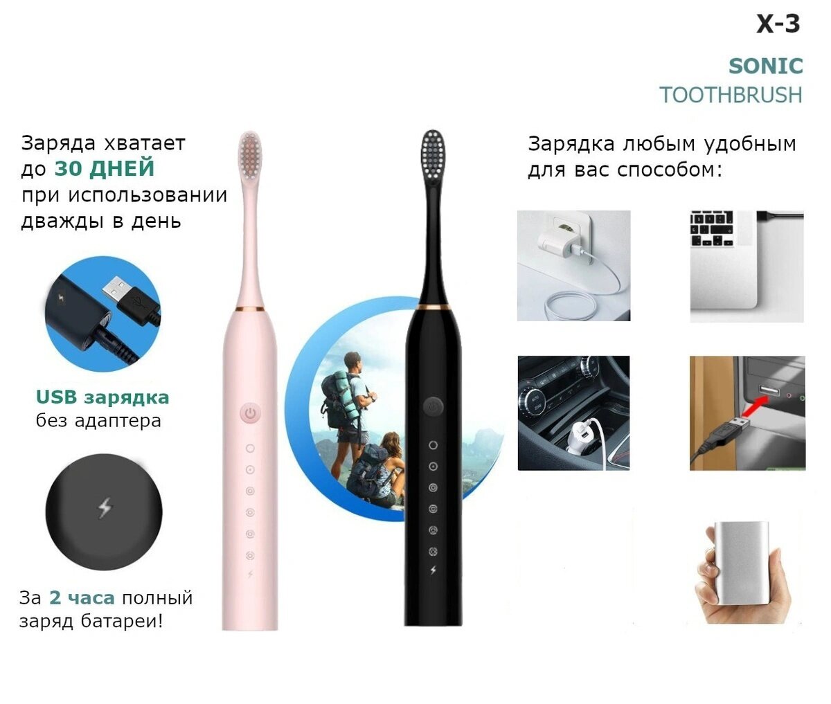 Электрическая зубная щетка Sonic X-3. Электрическая ультразвуковая зубная щетка .