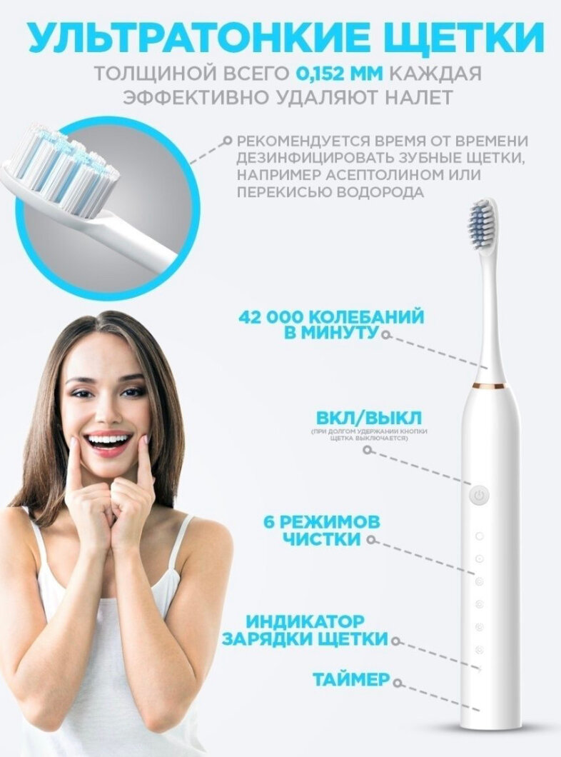 Электрическая зубная щетка SONIC TOOTHBRUSH X-3 /белая щётка / зубная щётка