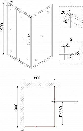 Душ. уголок NG- 012-14Q (1200х800х1950) низкий поддон(13см) стекло матовое, 2 места