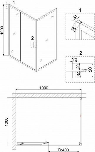 Душ. уголок NG- 012-14Q (1200х800х1950) низкий поддон(13см) стекло матовое, 2 места