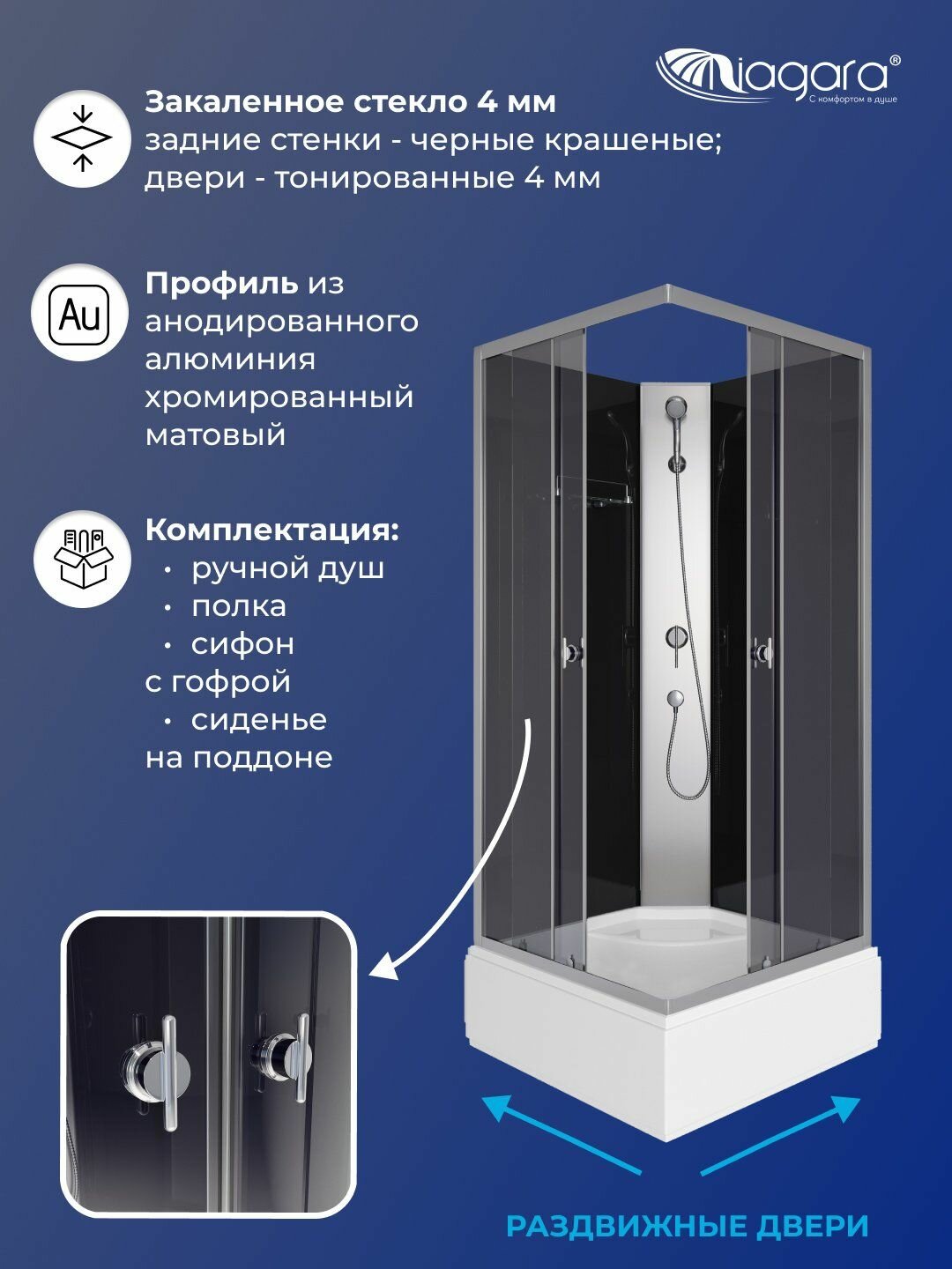 Душевая кабина Niagara Eco 90x90 низкий поддон, тонированная, без крыши