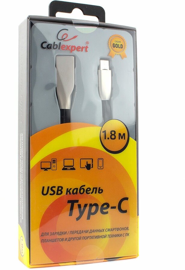 Cablexpert Кабель USB 2.0 CC-G-USBC01Bk-1.8M AM/Type-C, серия Gold, длина 1.8м, черный, блистер